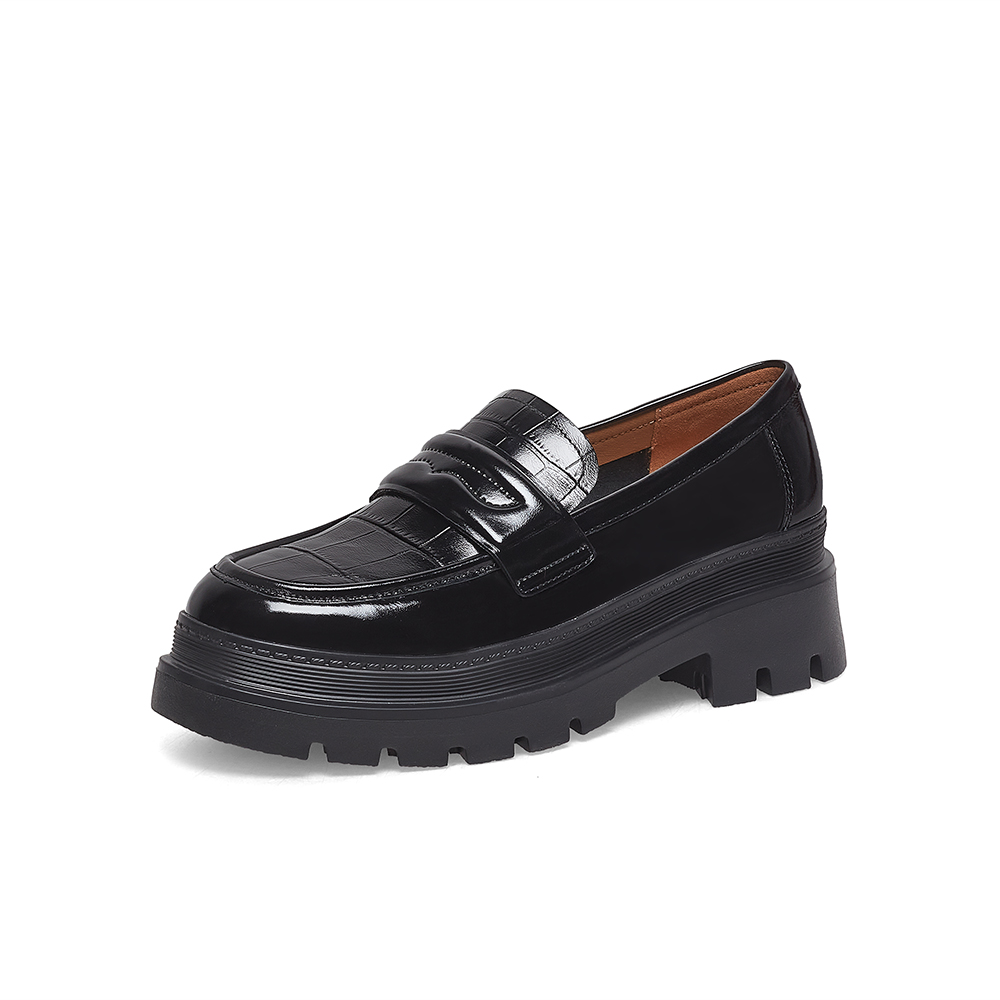 百思图2023春季新款商场同款时尚潮流通勤乐福鞋女单鞋VKZ02AA3
