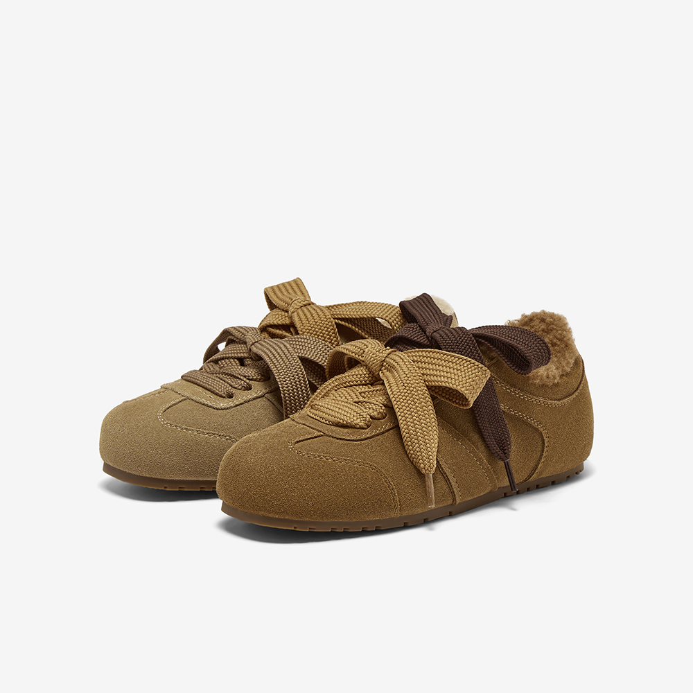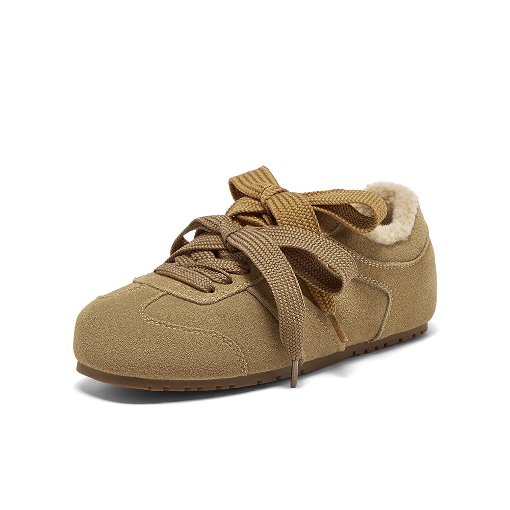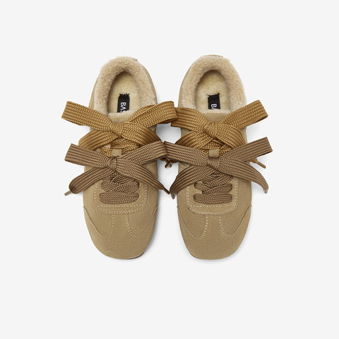 百思图2025冬季新款德训鞋时尚复古加绒保暖女运动休闲鞋W0671DM5