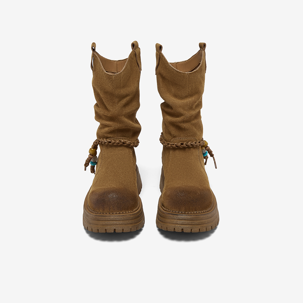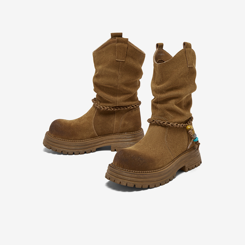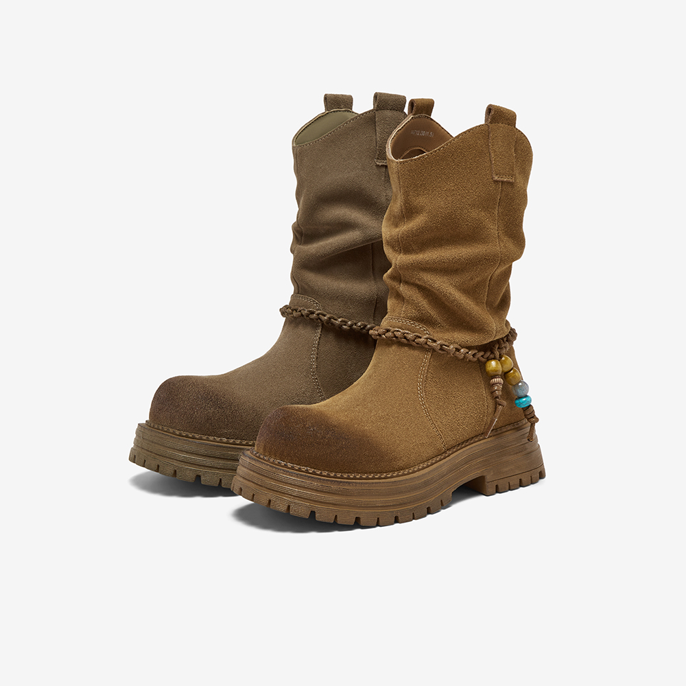 • 靴筒筒面材质:牛剖层皮革