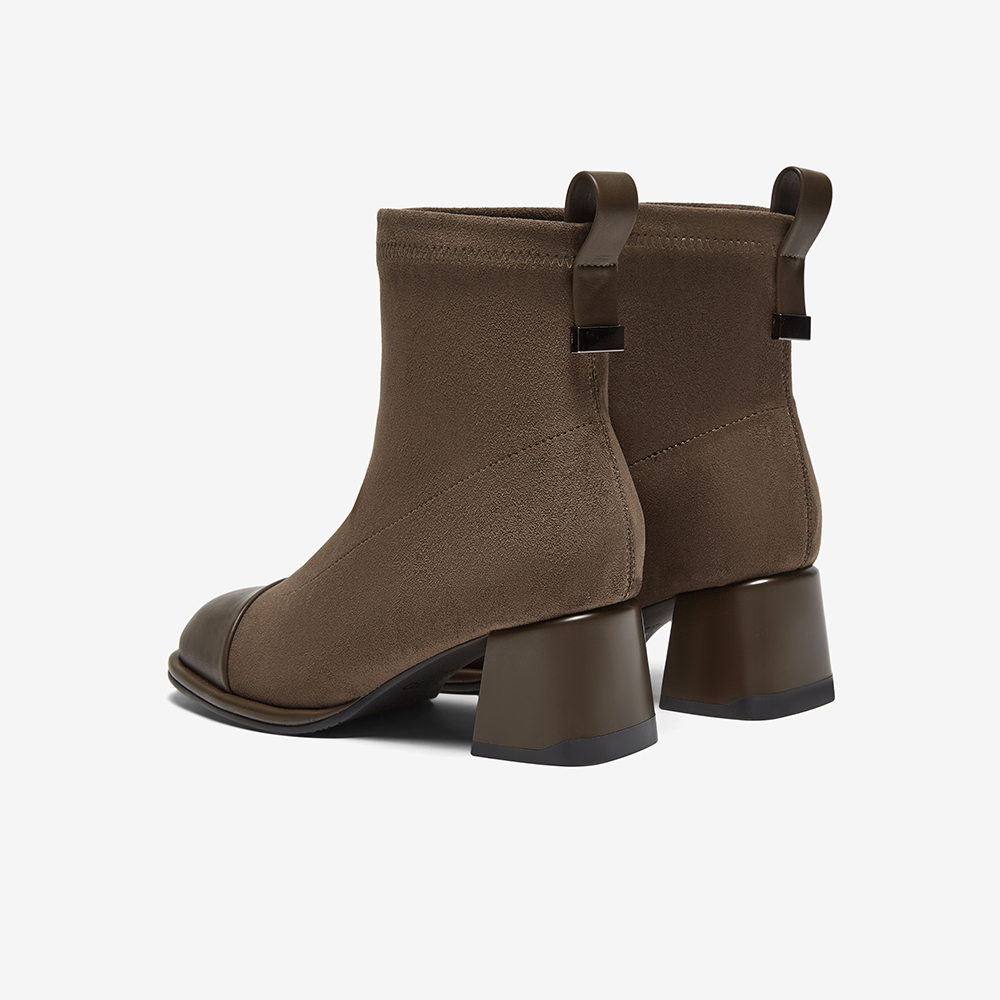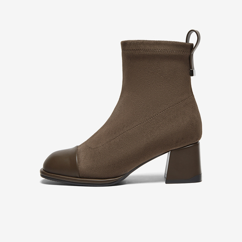 百思图2024冬季新款商场同款时尚通勤弹力靴粗跟女短靴W7110DD4
