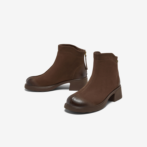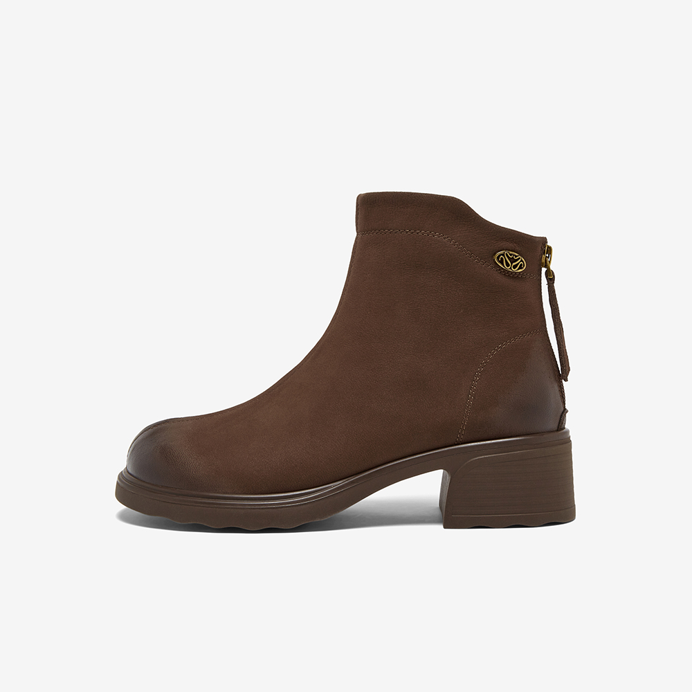 百思图2025冬季新款商场同款时装靴简约通勤粗跟女短靴W8028DD5