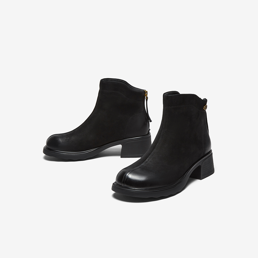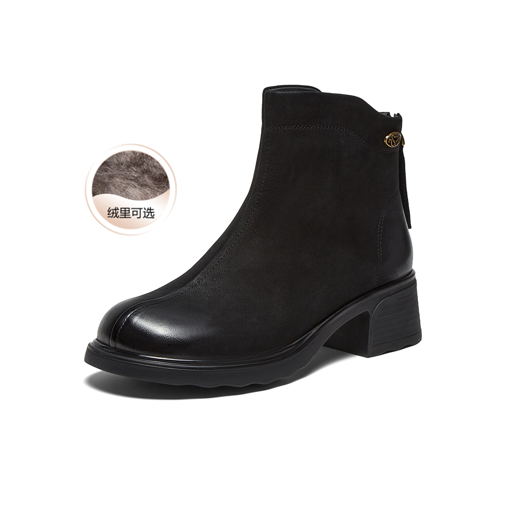 百思图2025冬季新款商场同款时装靴简约通勤粗跟女短靴W8028DD5