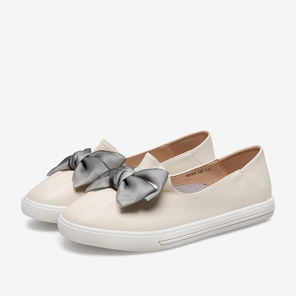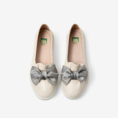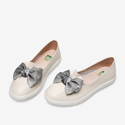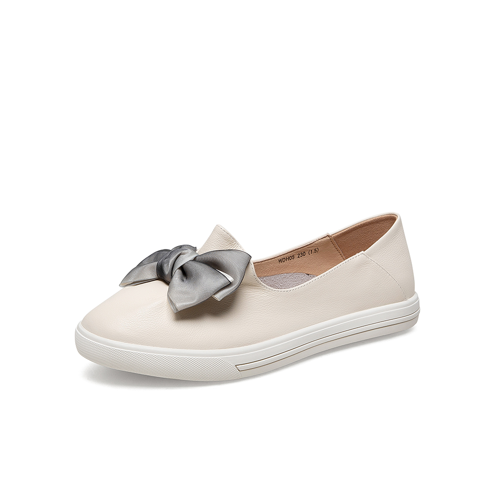 百思图2021春季新款商场同款时尚蝴蝶结圆头浅口女单鞋WDH05AQ1
