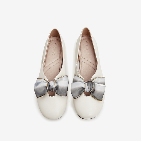 百思图2021秋季新款商场同款优雅气质蝴蝶结浅口女单鞋WNP06CQ1
