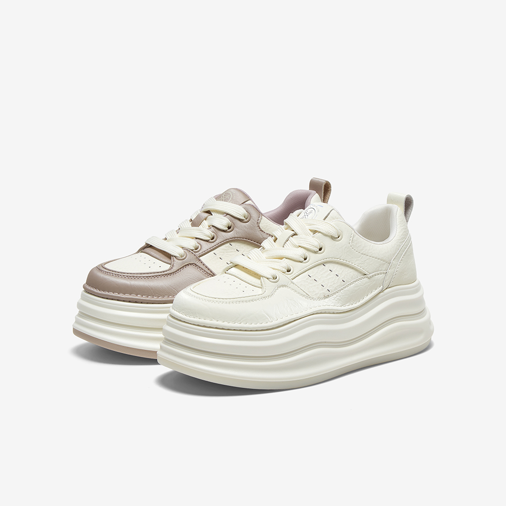 百思图2025春季新款商场同款街头运动板鞋厚底女休闲鞋X0061AM5
