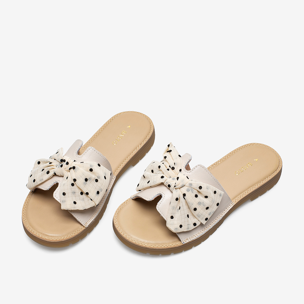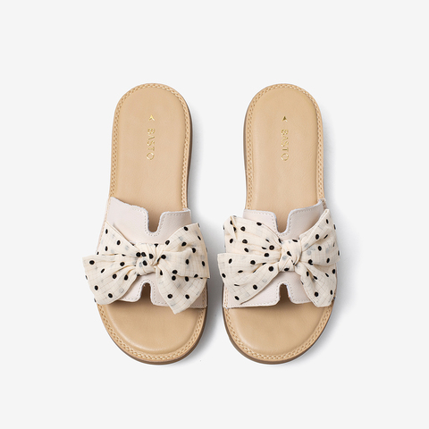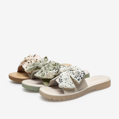 百思图2021夏季新款商场同款时尚蝴蝶结平底一字拖女拖鞋YB209BT1