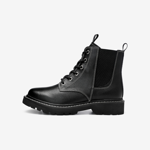百思图2020冬季新款商场同款时尚拼接前系带马丁靴女皮靴YYK22DD0
