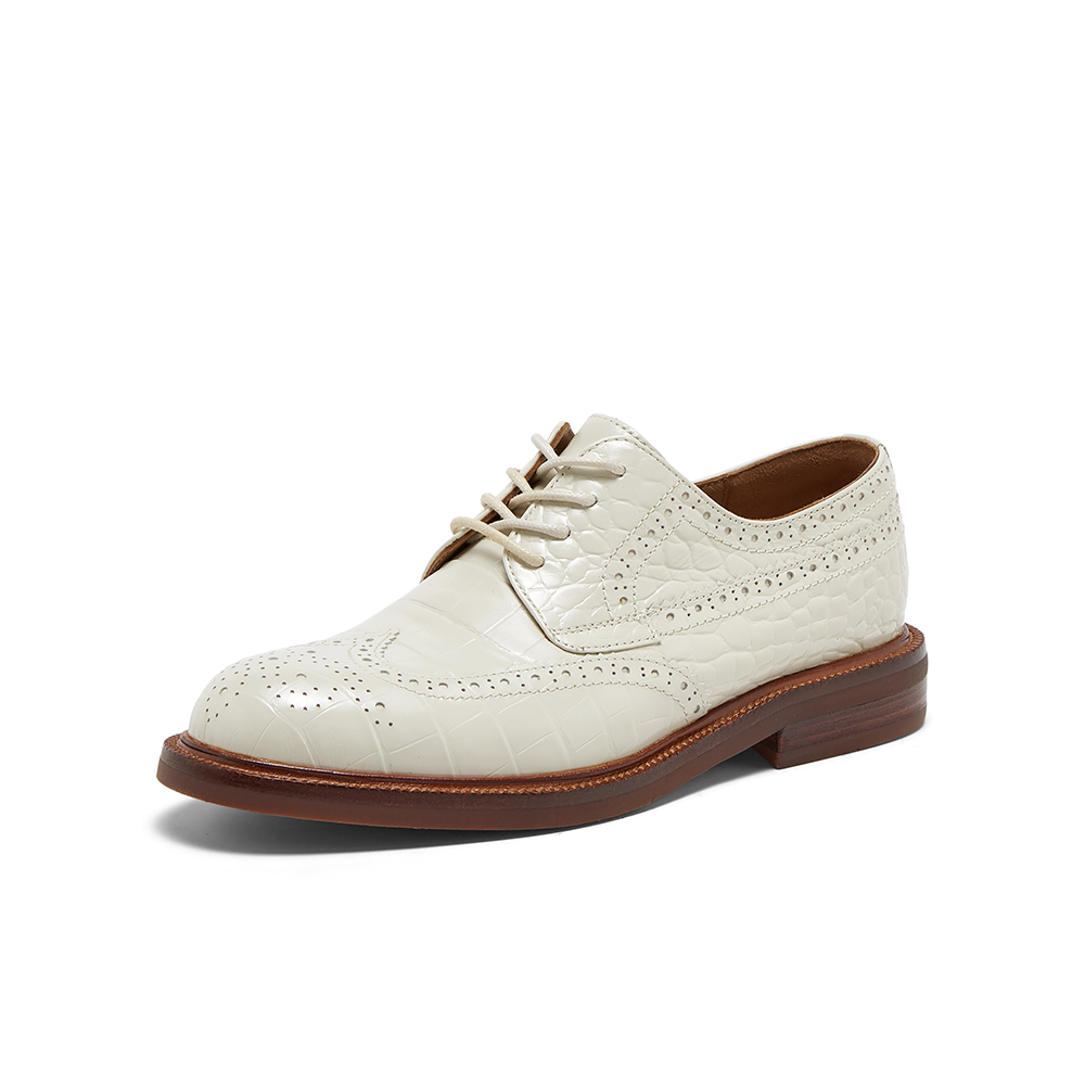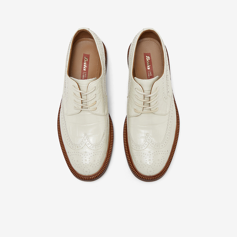 Bata英伦布洛克女2025春商场新款牛皮单鞋RED LABEL红标15511AM5