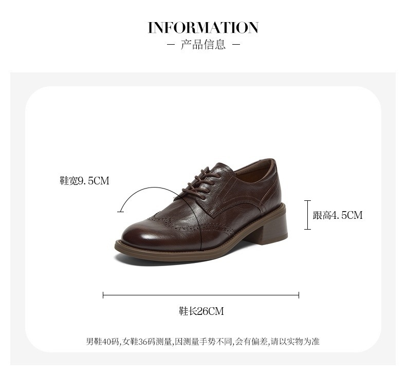英伦风羊皮粗跟布洛克小皮鞋