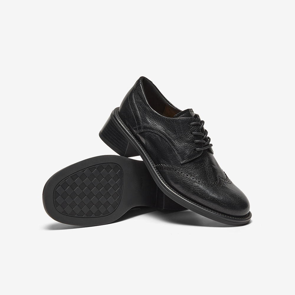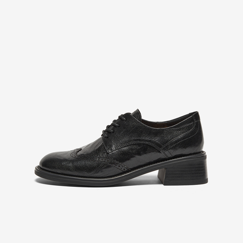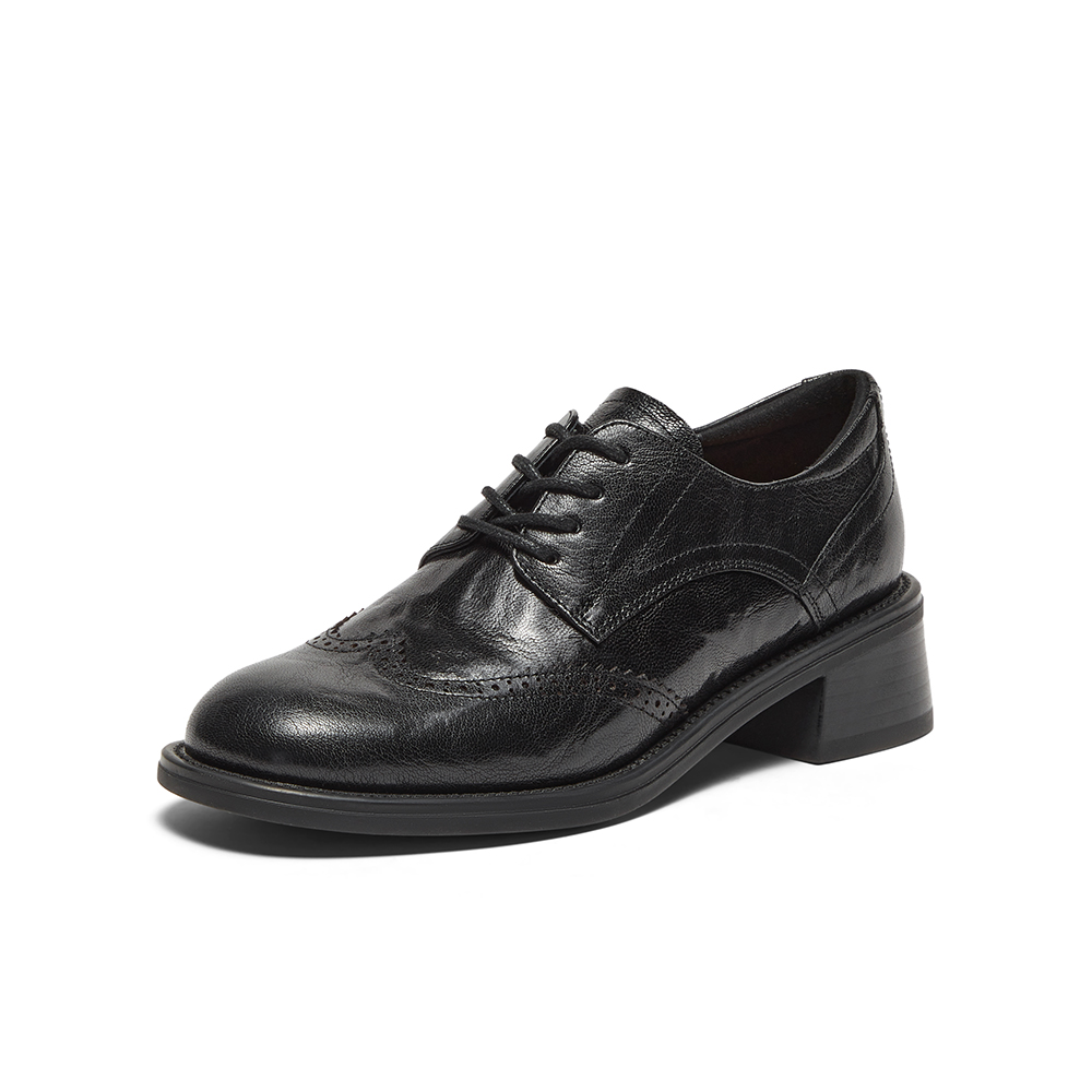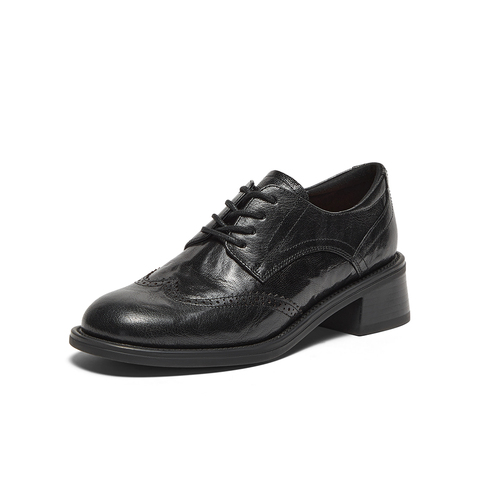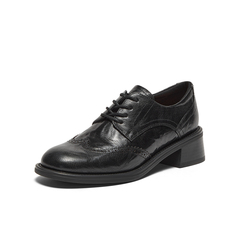 英伦风羊皮粗跟布洛克小皮鞋