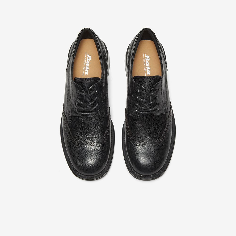 Bata牛津鞋女2024秋季新款英伦风羊皮粗跟布洛克小皮鞋45019CM4