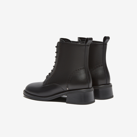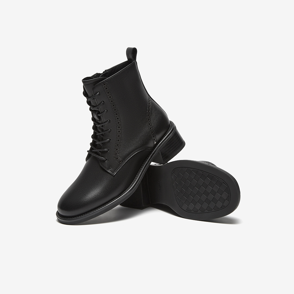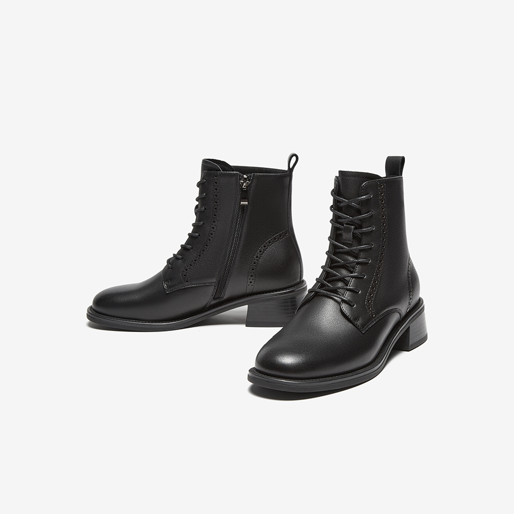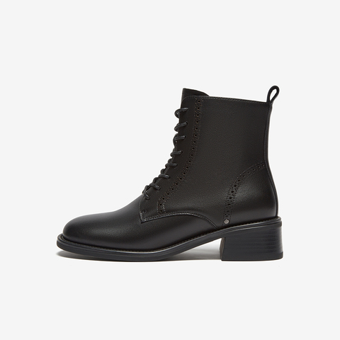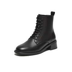牛皮英伦风牛皮粗跟纹理短筒靴