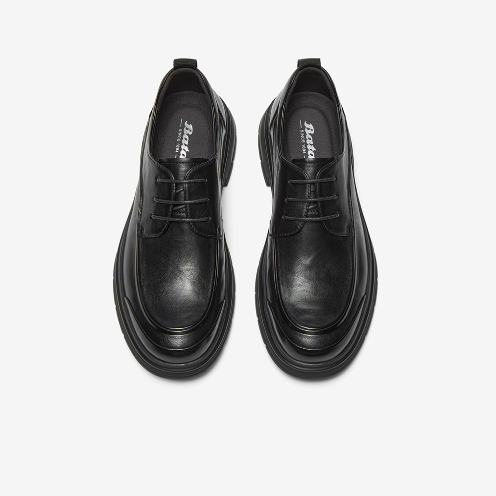 Bata休闲皮鞋男2025冬商场新款百搭牛皮通勤商务厚底皮鞋51571DM5