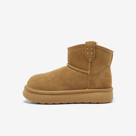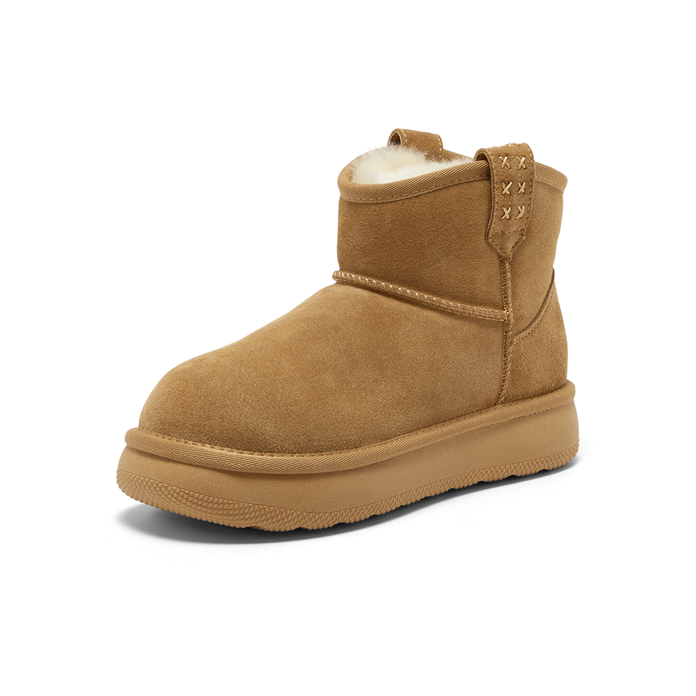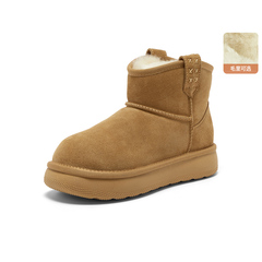 百搭休闲牛剖皮毛毛厚底短筒靴