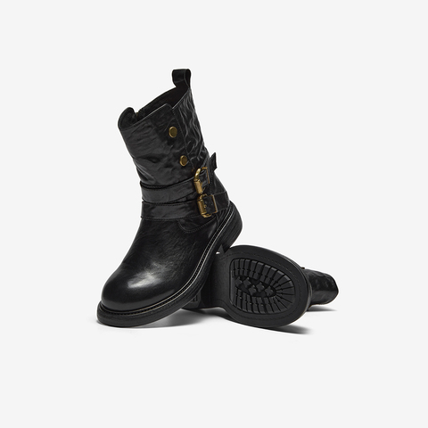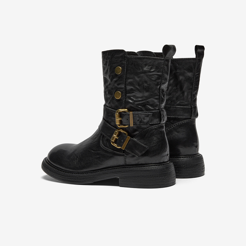 牛皮通勤百搭粗跟西部中筒靴