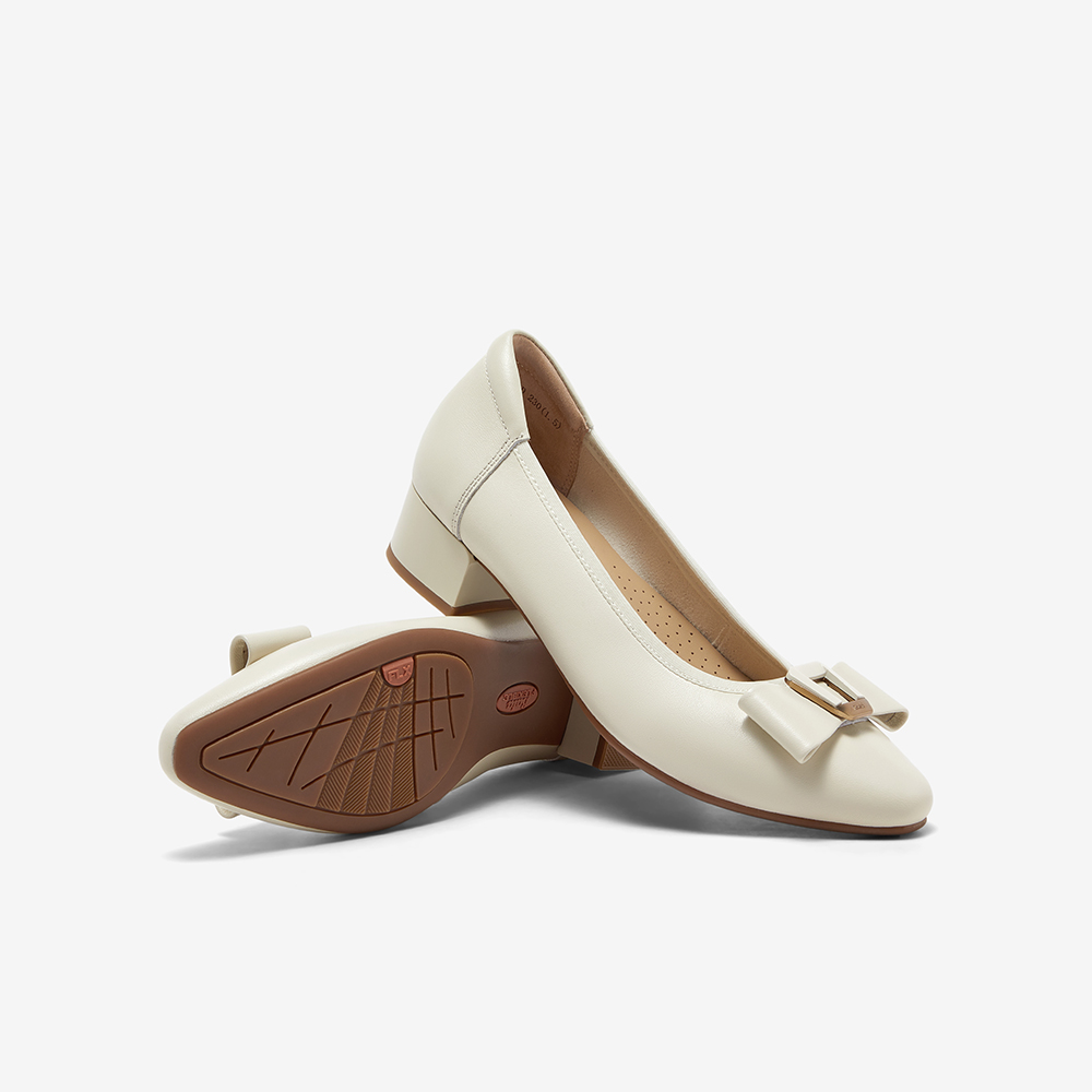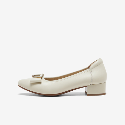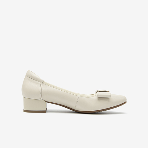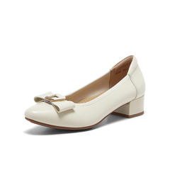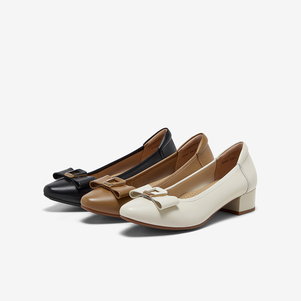 羊皮粗跟通勤蝴蝶结单鞋