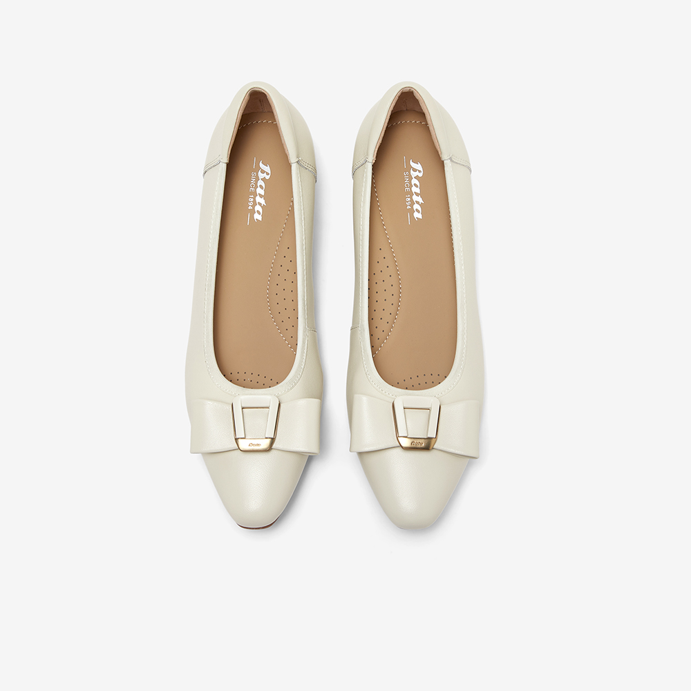 Bata浅口单鞋女2025春商场新款羊皮粗跟通勤蝴蝶结单鞋6296DAQ5