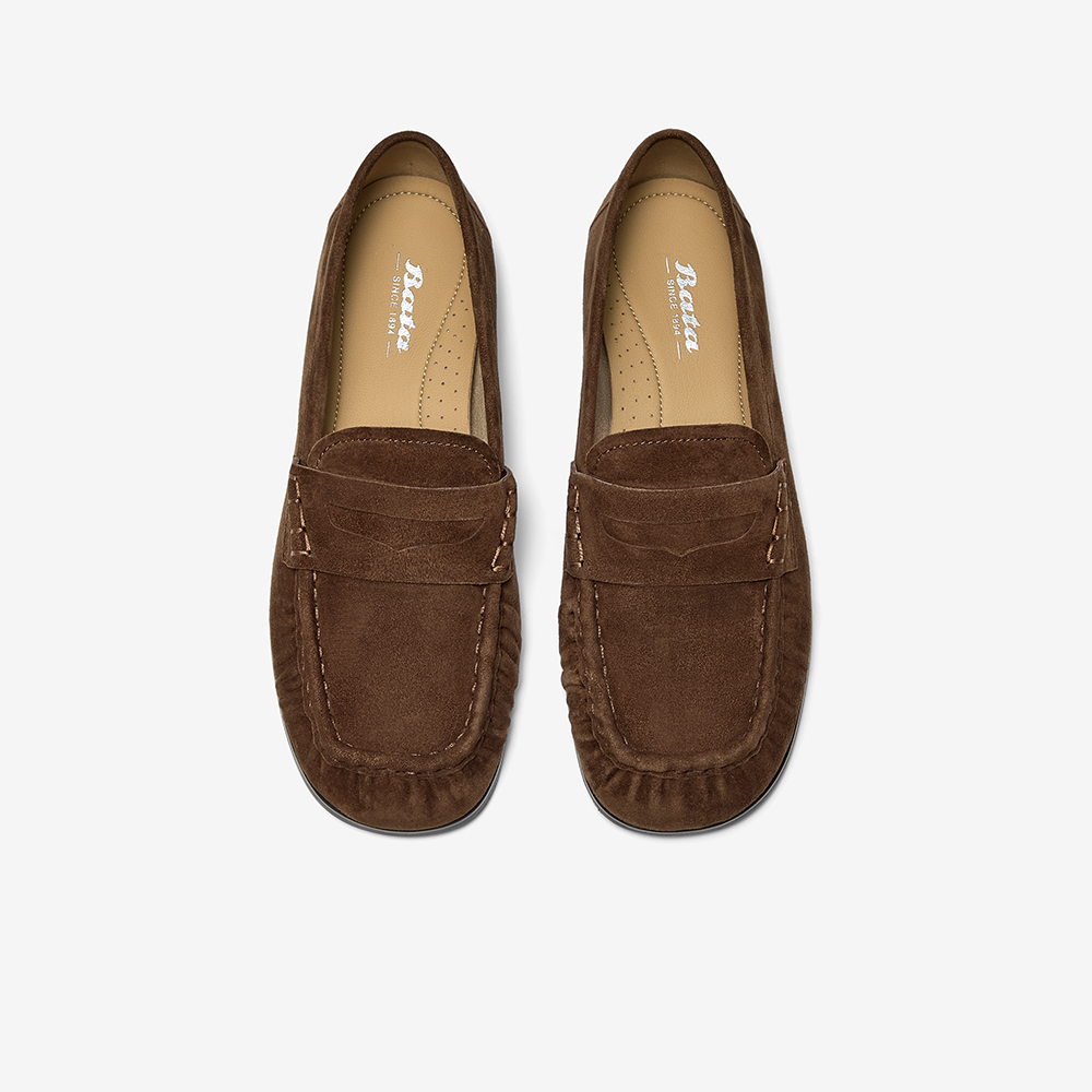 Bata乐福鞋女单2025秋季新款英伦风羊绒皮舒适百搭一脚蹬63081CA5
