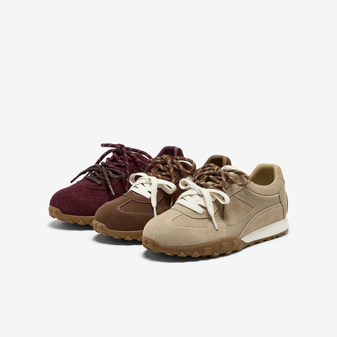牛剖皮双色鞋带休闲运动鞋