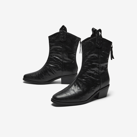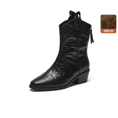 Bata西部靴女2025冬季商场新款羊皮百搭复古牛仔时装靴8931DDS5