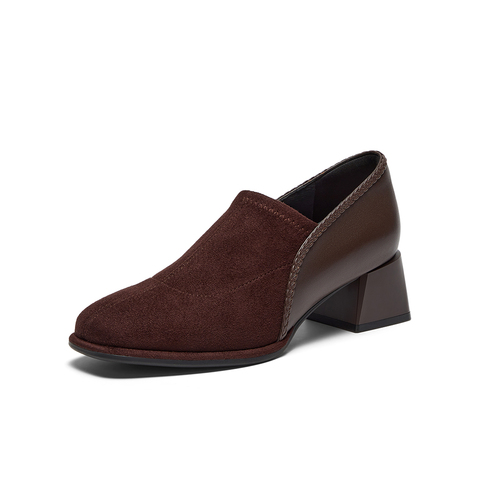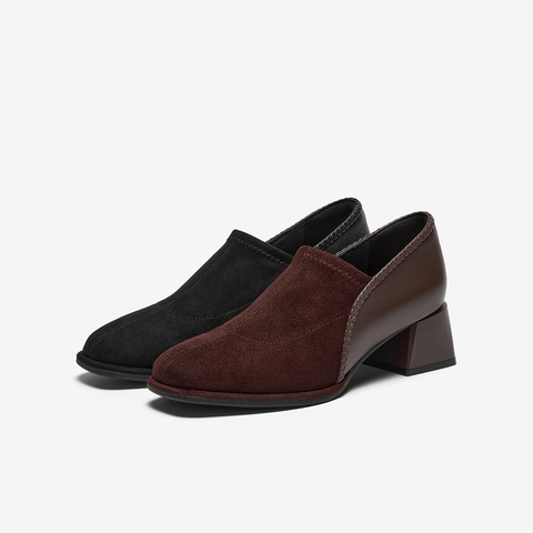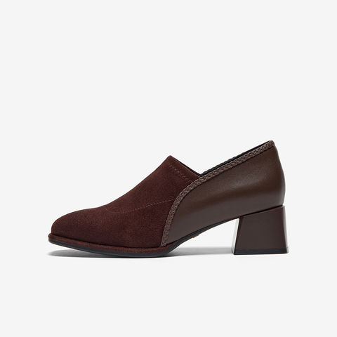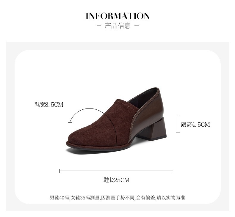 软底复古羊皮粗跟单鞋