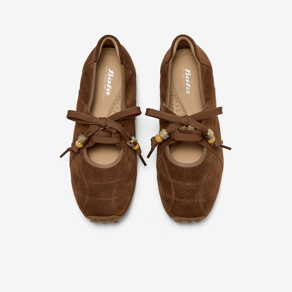 Bata休闲玛丽珍2025秋季商场新款牛剖皮浅口豆豆底单鞋ABI01CQ5