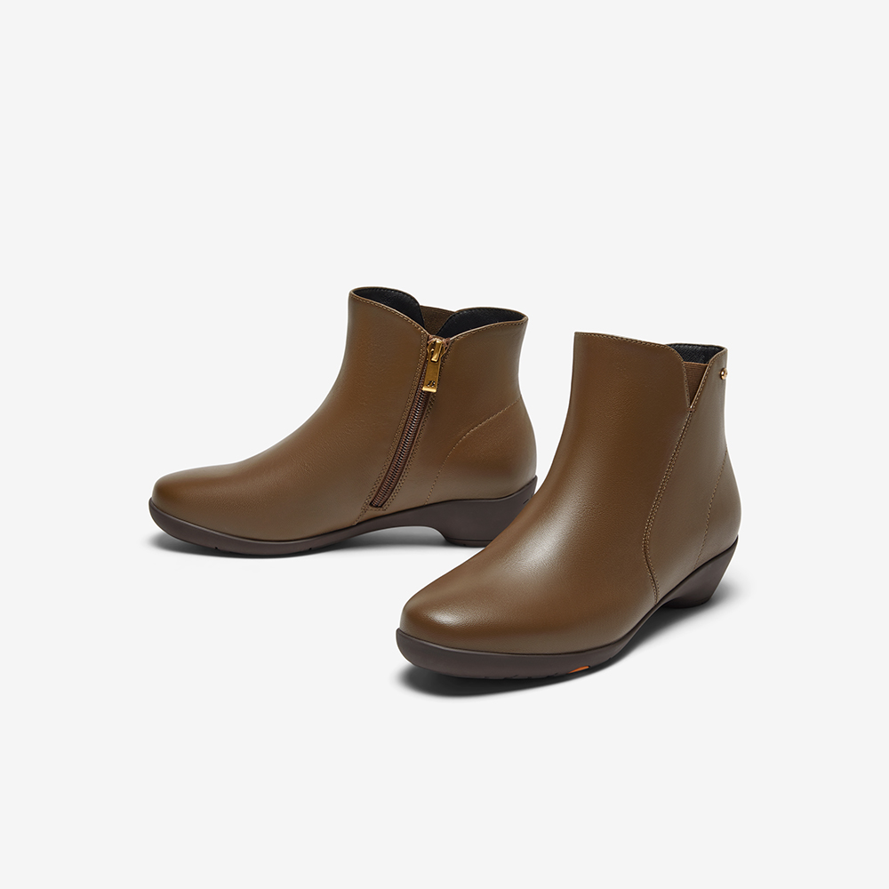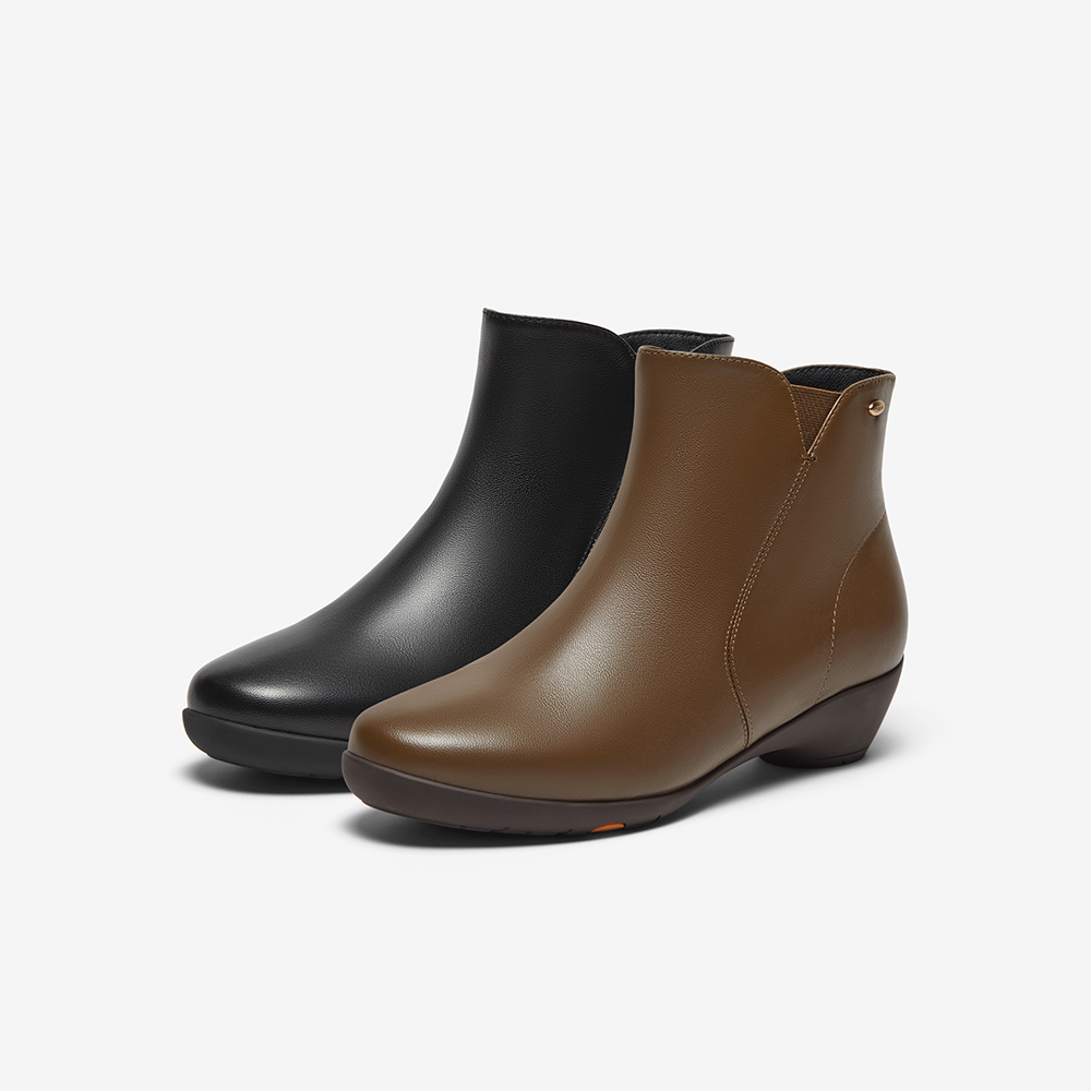 百搭软底羊皮通勤粗跟短筒靴