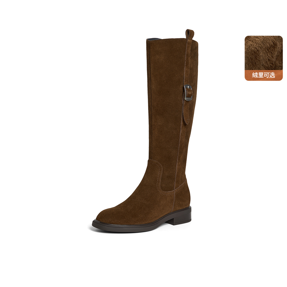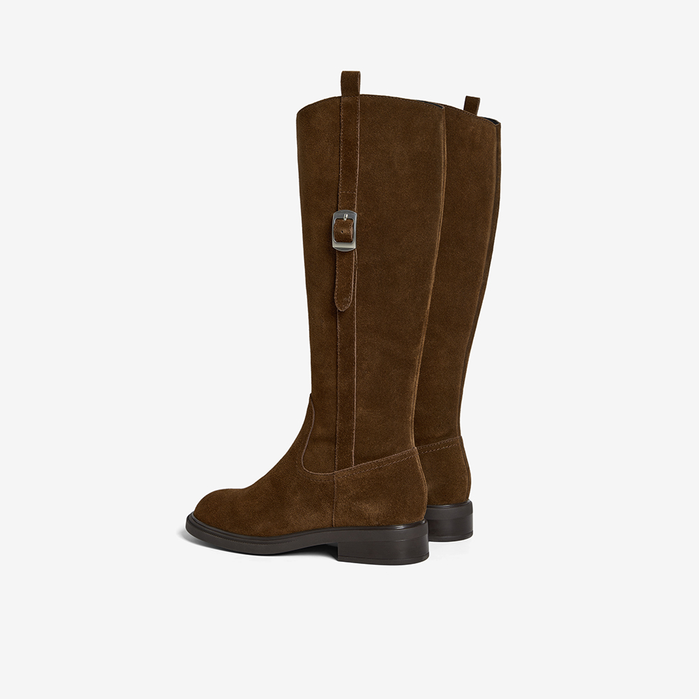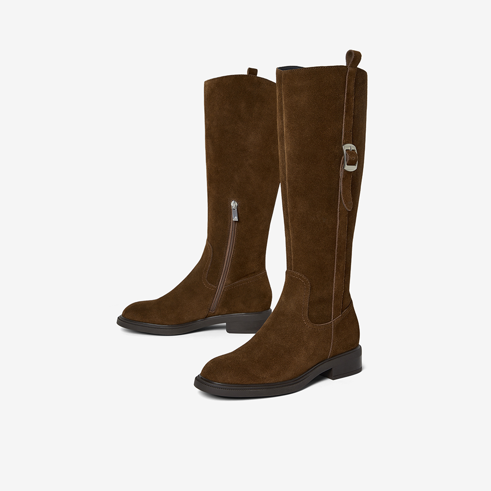 牛剖皮粗跟显瘦长筒牛仔靴
