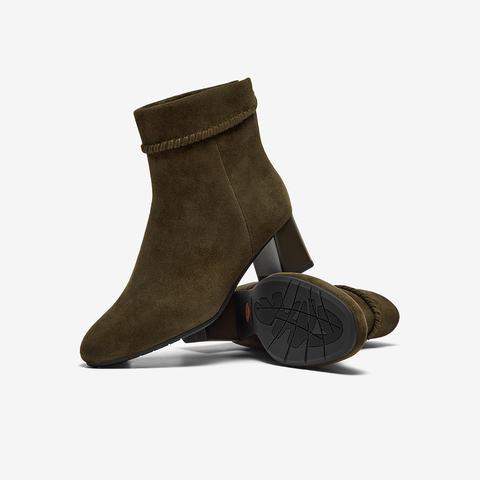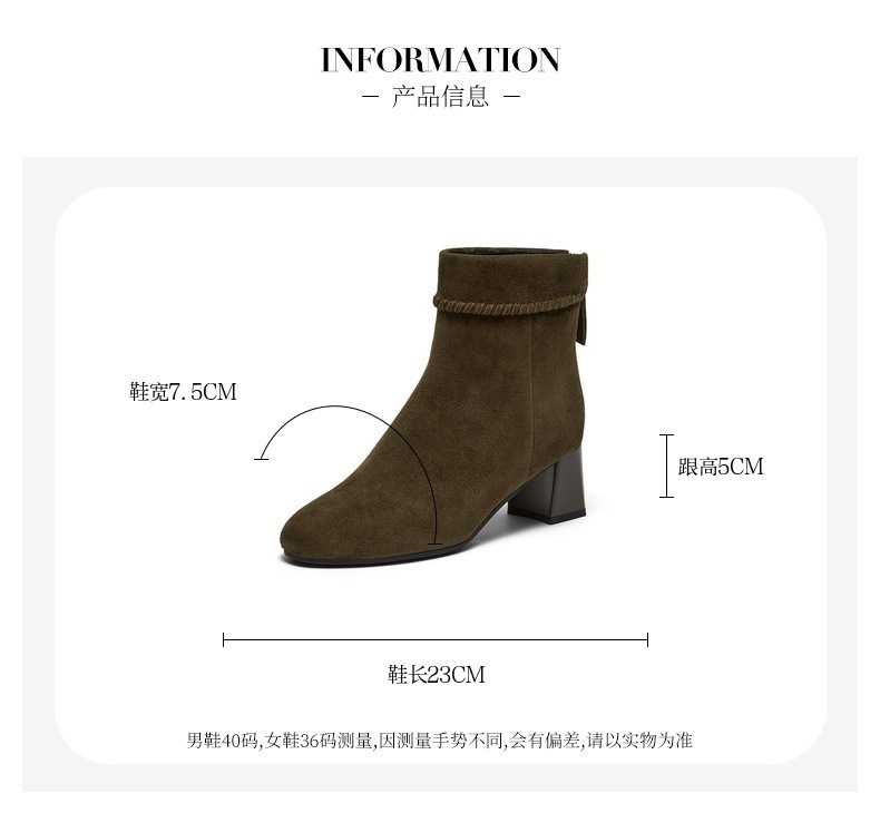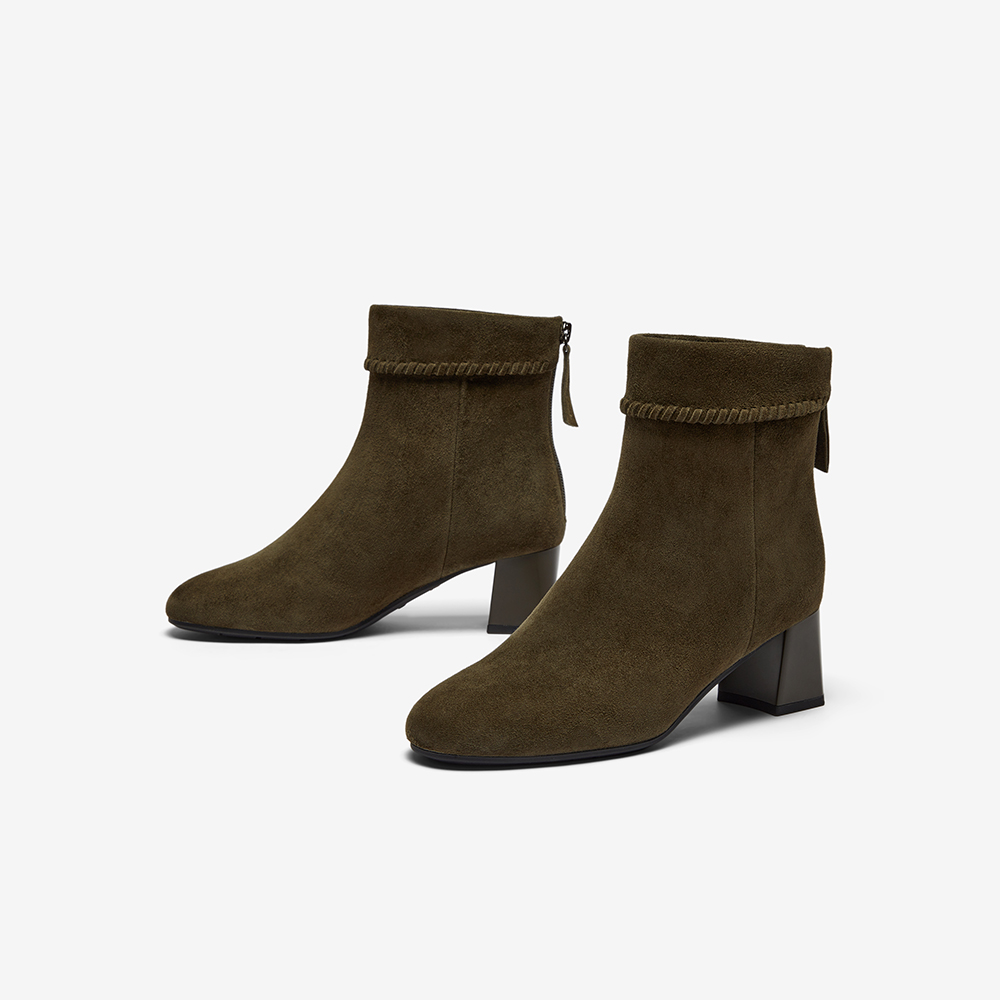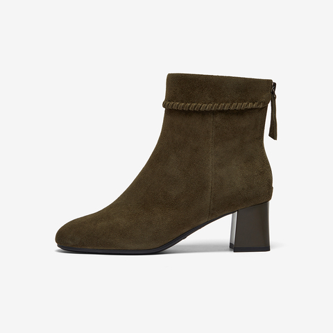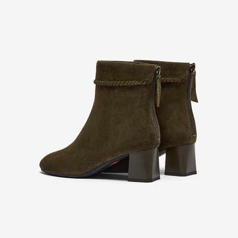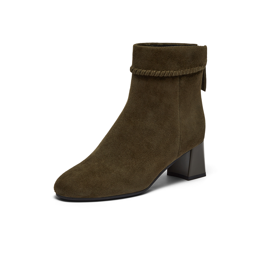 粗跟百搭羊皮软底短筒靴