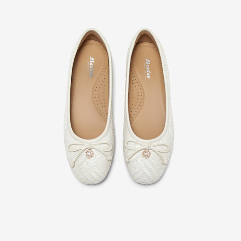 Bata浅口单鞋女2025春季商场新款优雅编织通勤软底单鞋AMV47AQ5