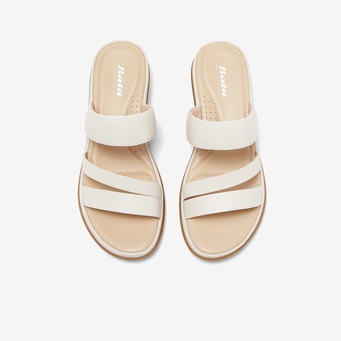 Bata外穿拖鞋女2024夏商场新款百搭羊皮粗跟软底条带凉拖AOE08BT4