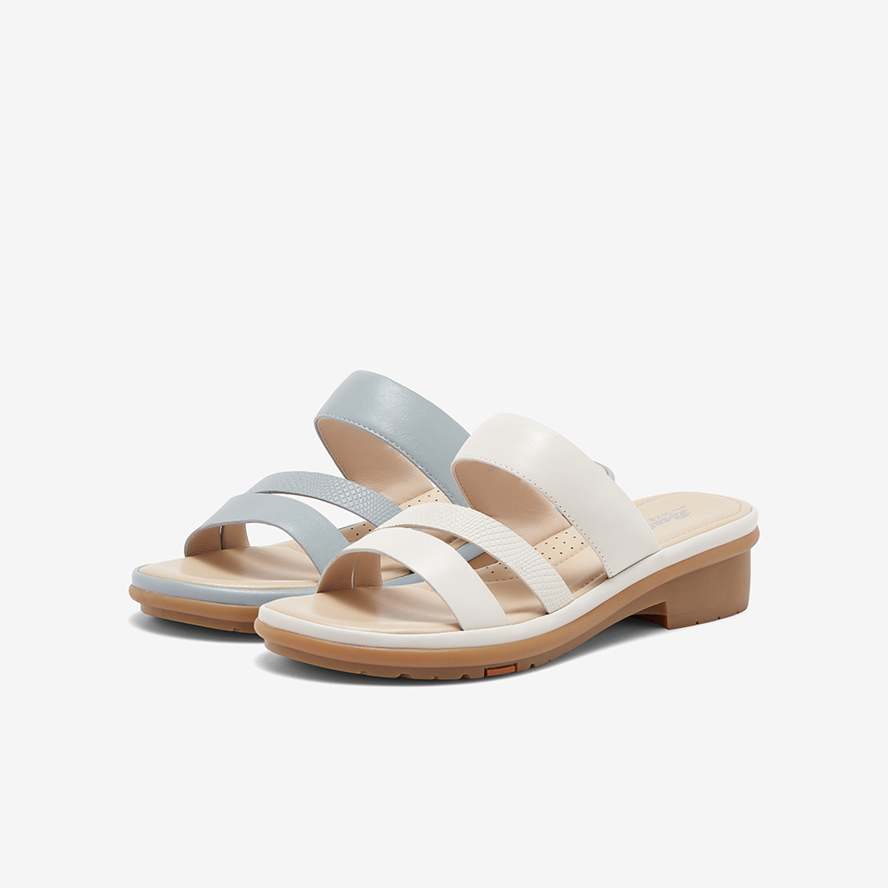 百搭羊皮粗跟软底条带凉拖