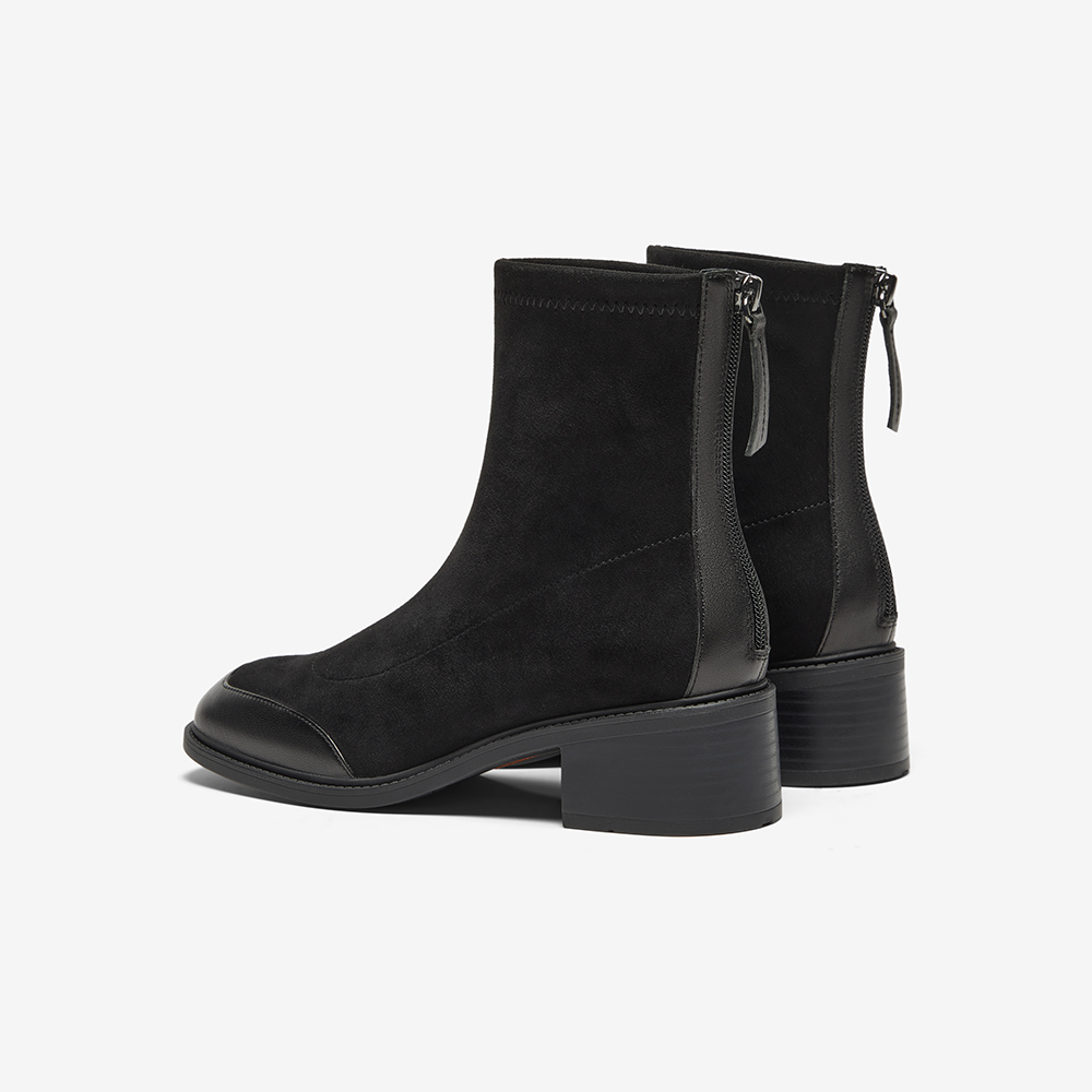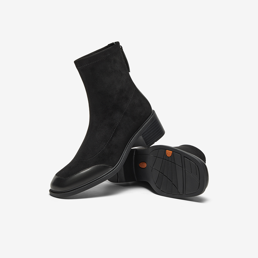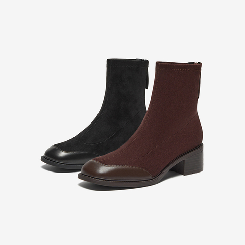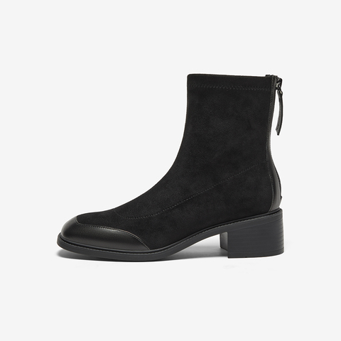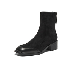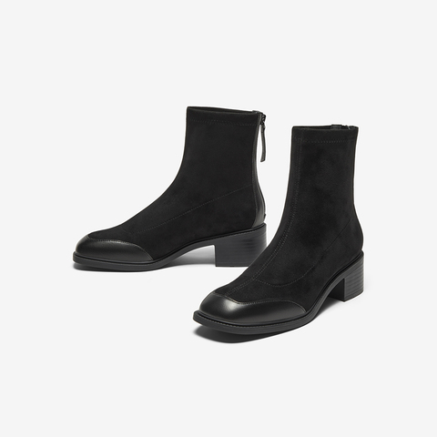 弹力复古通勤粗跟软底短筒靴