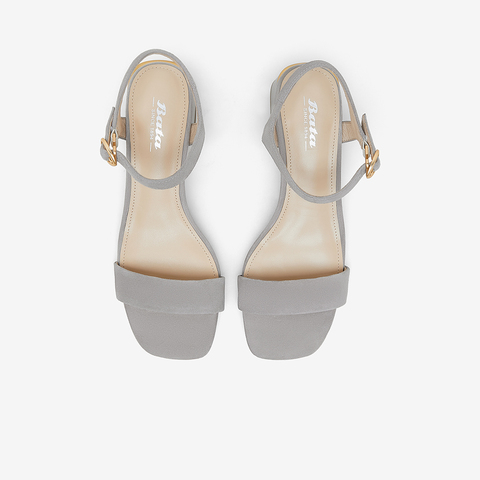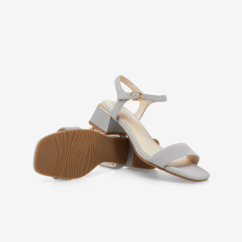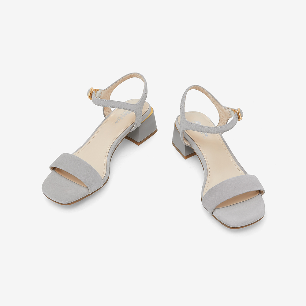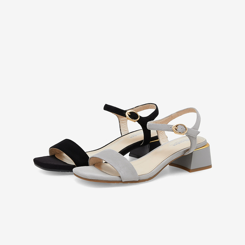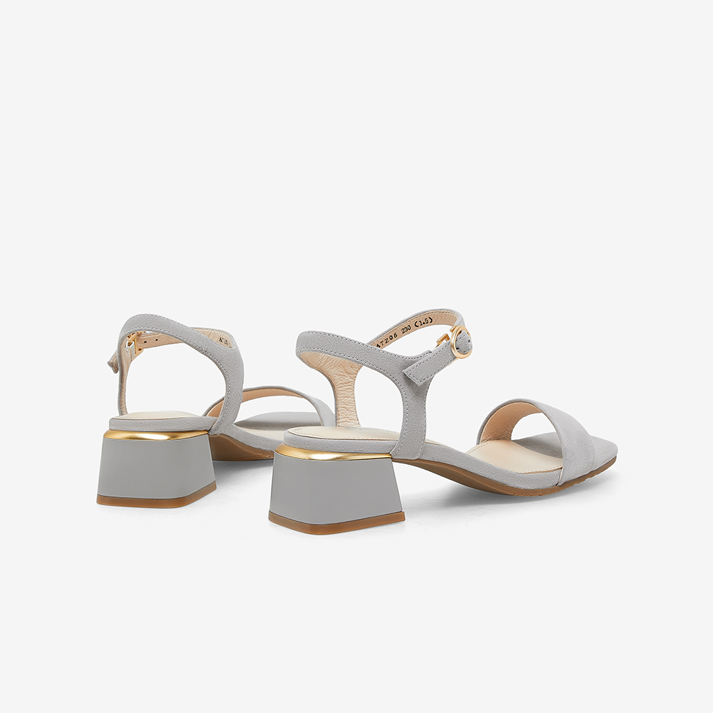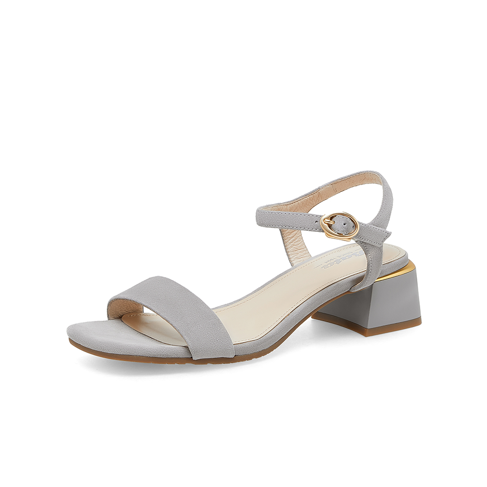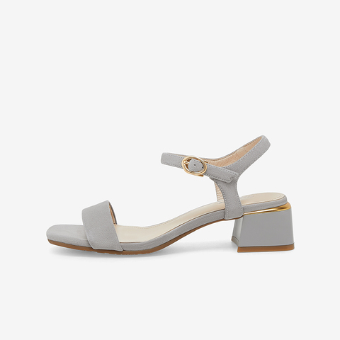 简约百搭羊皮中粗跟一字带凉鞋