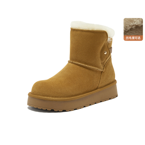 Bata雪地靴女2025冬商场新款牛剖皮保暖厚底百搭时尚短靴AUC50DD5