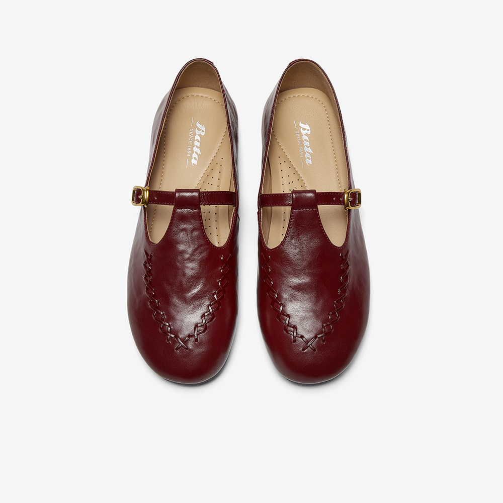 Bata麦穗玛丽珍2025春秋商场新款复古英伦羊皮软底乐福鞋AUO33AA6
