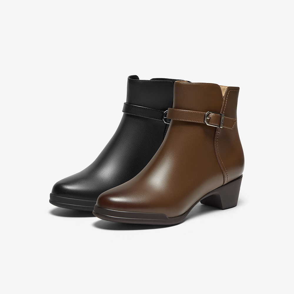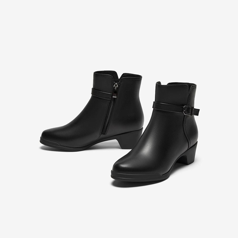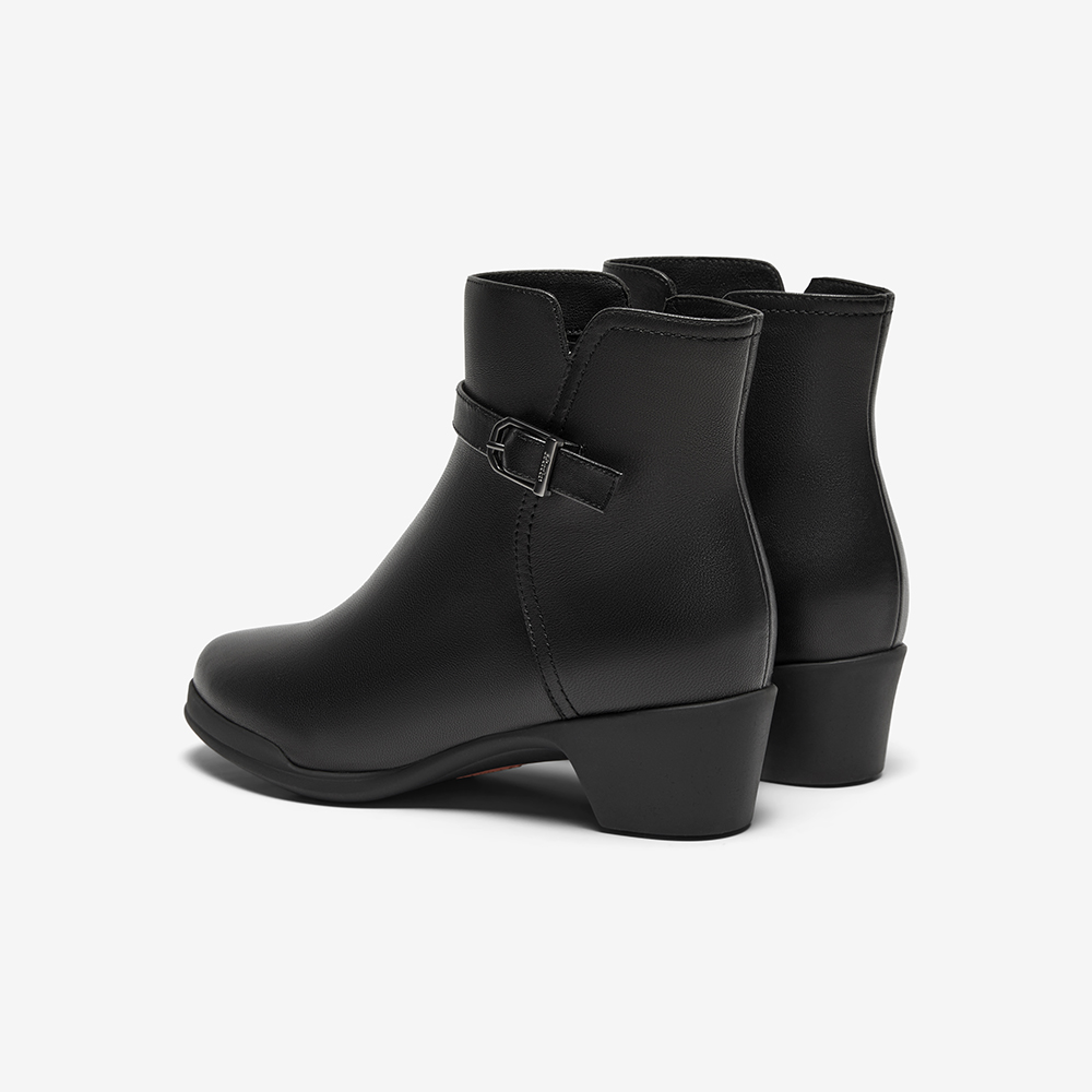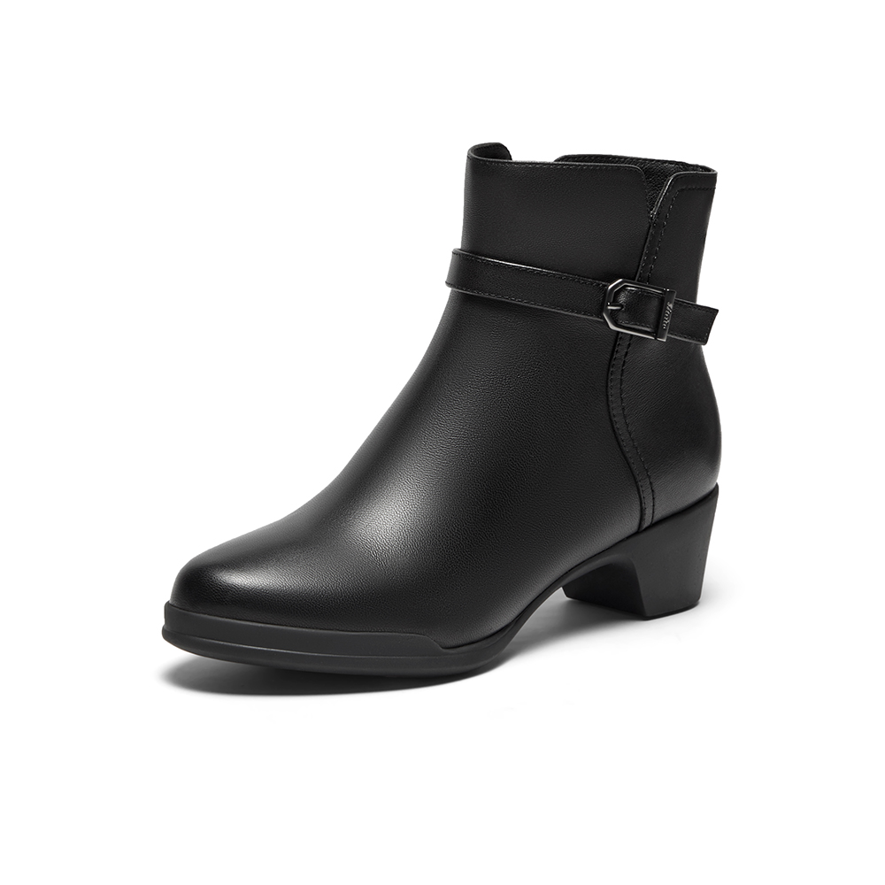 羊皮通勤百搭软底粗跟短筒靴