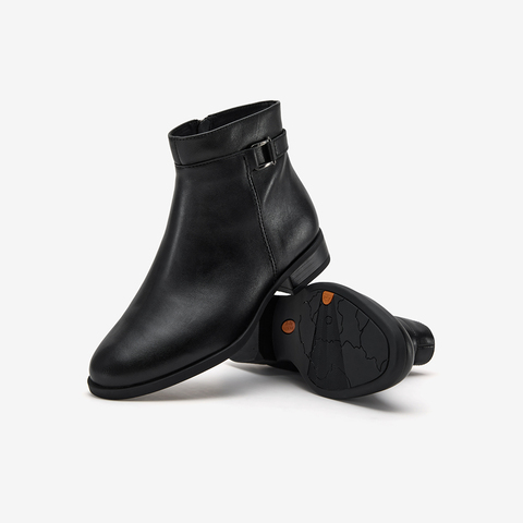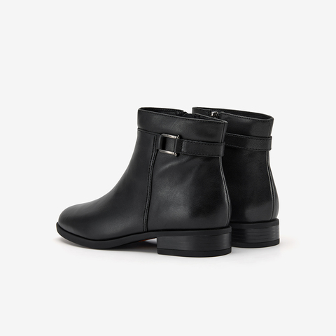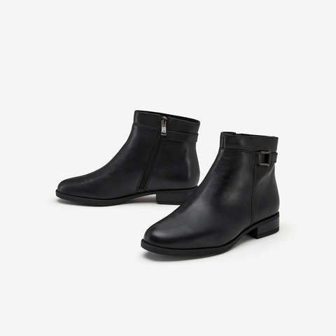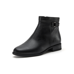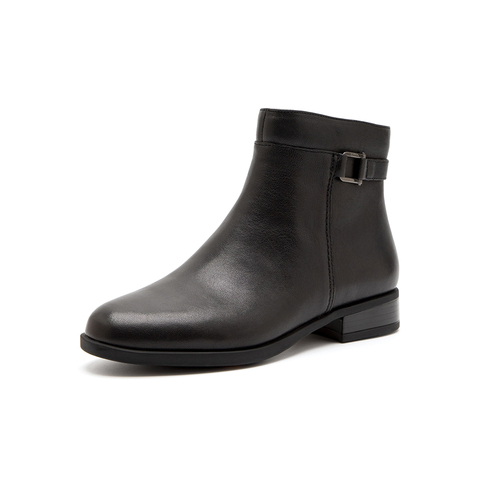 羊皮通勤软底粗跟短筒靴