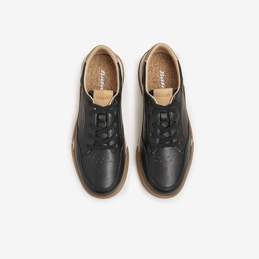 Bata休闲鞋女2023秋季商场新款通勤牛皮厚底透气运动板鞋AWW08CM3