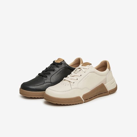 通勤牛皮厚底透气运动板鞋