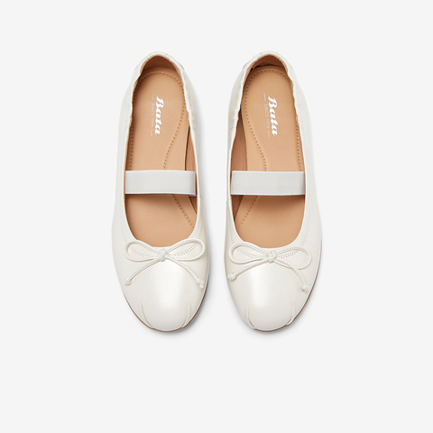 Bata人鱼芭蕾舞鞋2024秋季商场新款通勤羊皮软底浅口单鞋AXF47CQ4