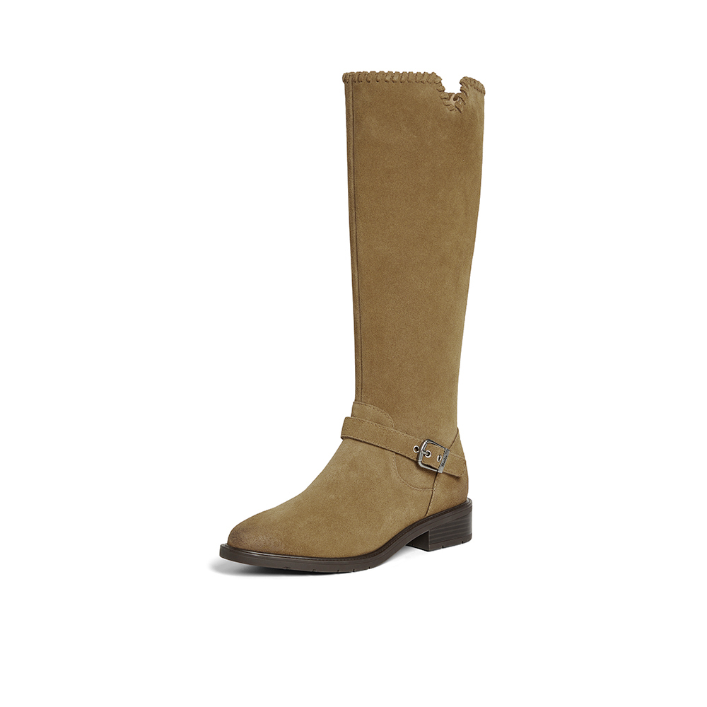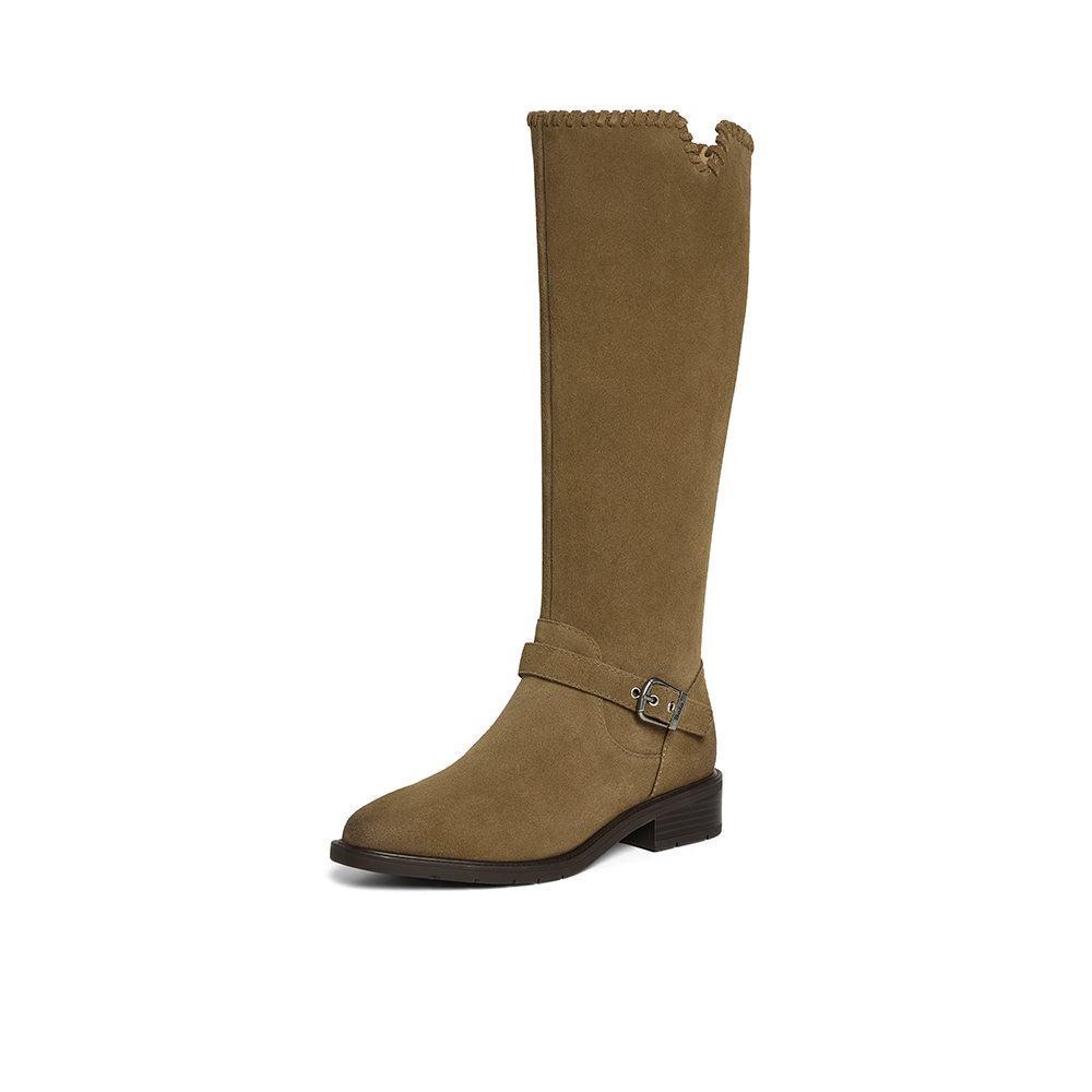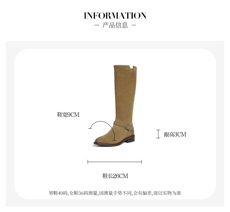 英伦牛仔靴粗跟牛剖皮长靴
