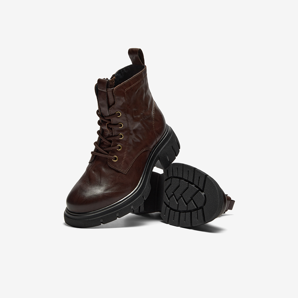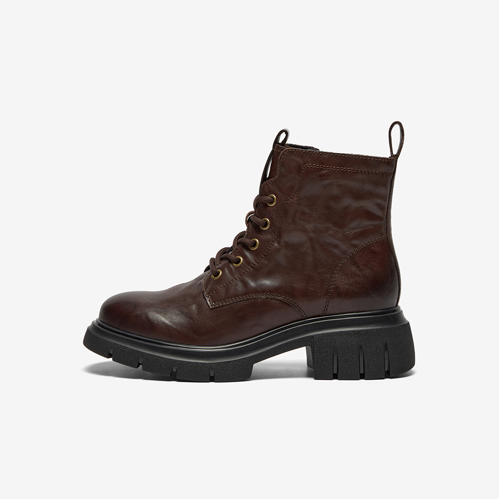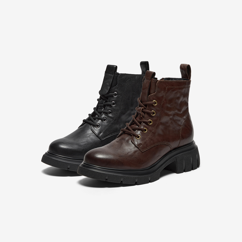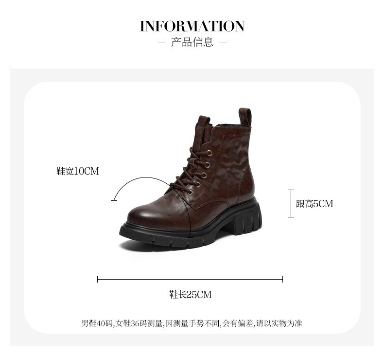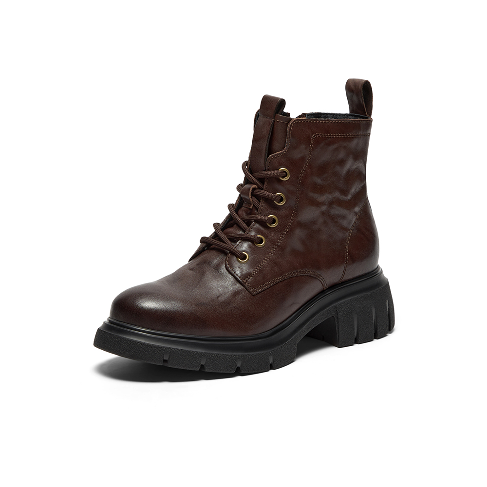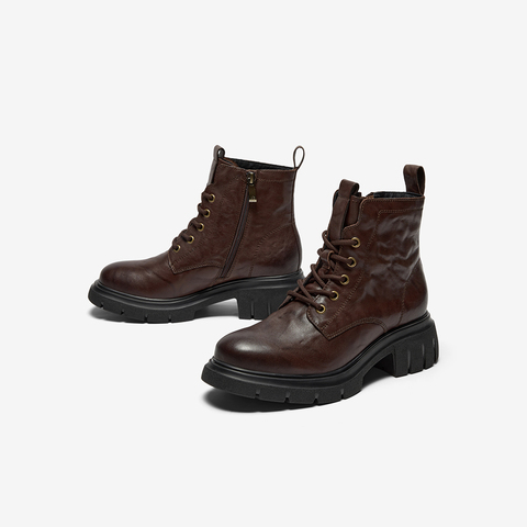 牛皮粗跟百搭纹理短筒靴