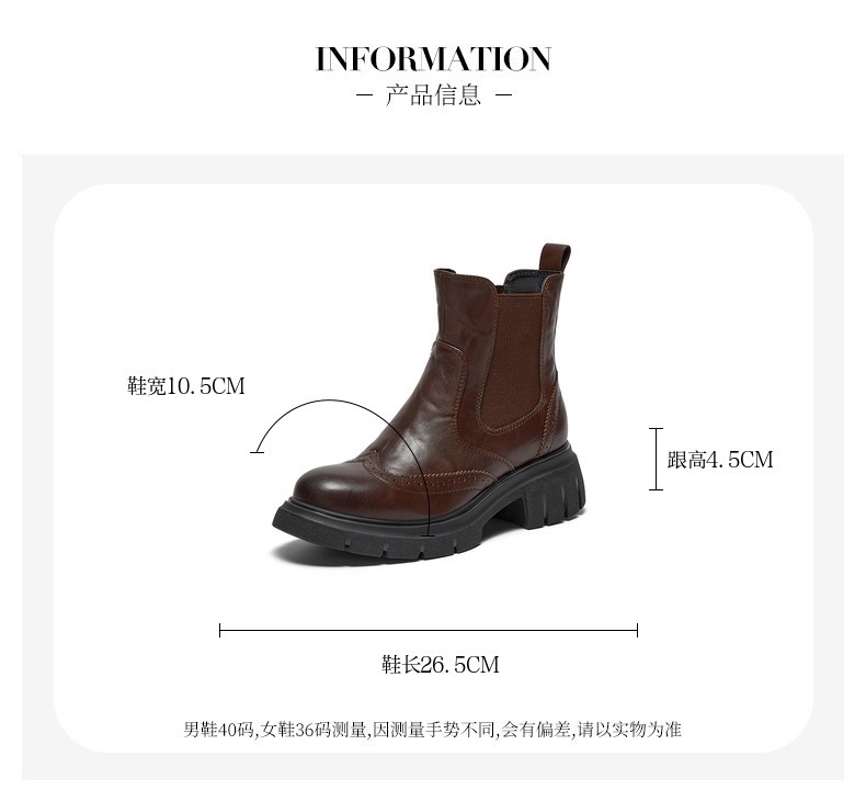 英伦风牛皮粗跟通勤短筒靴