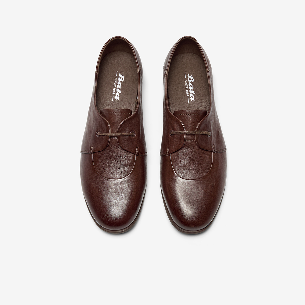 Bata深口单鞋女2025秋季新款百搭复古牛皮通勤牛津便鞋YR01DCM5