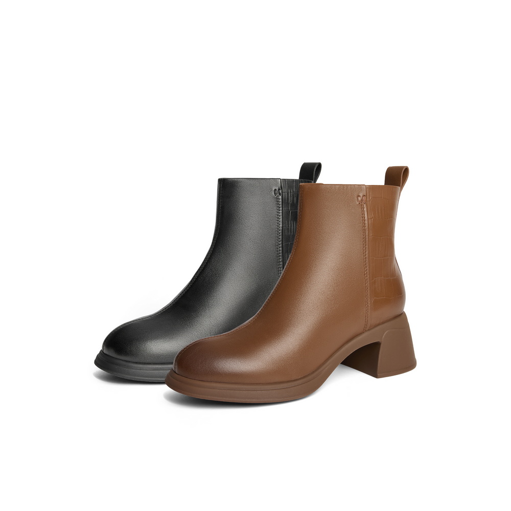 百丽气质时装靴女2024冬新商场同款真皮粗跟通勤短靴3A645DD4