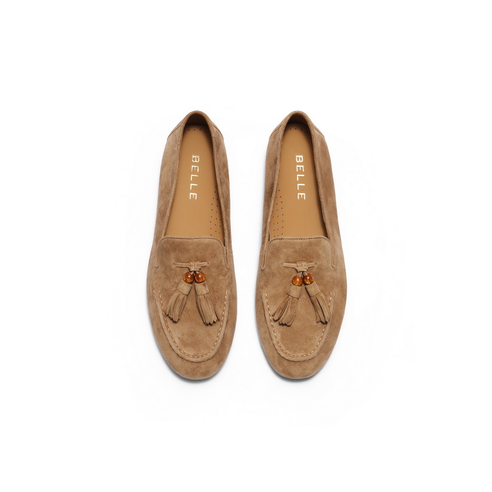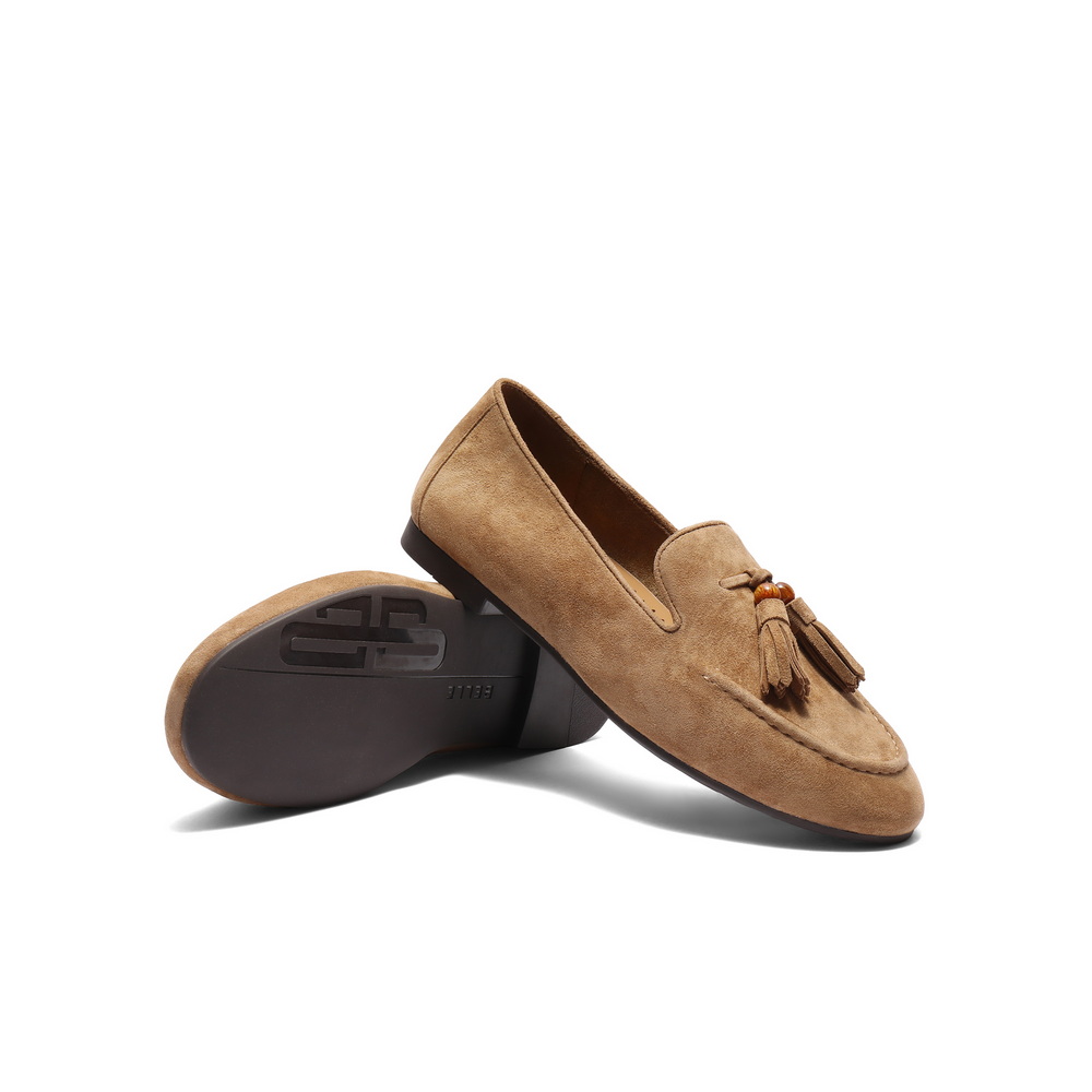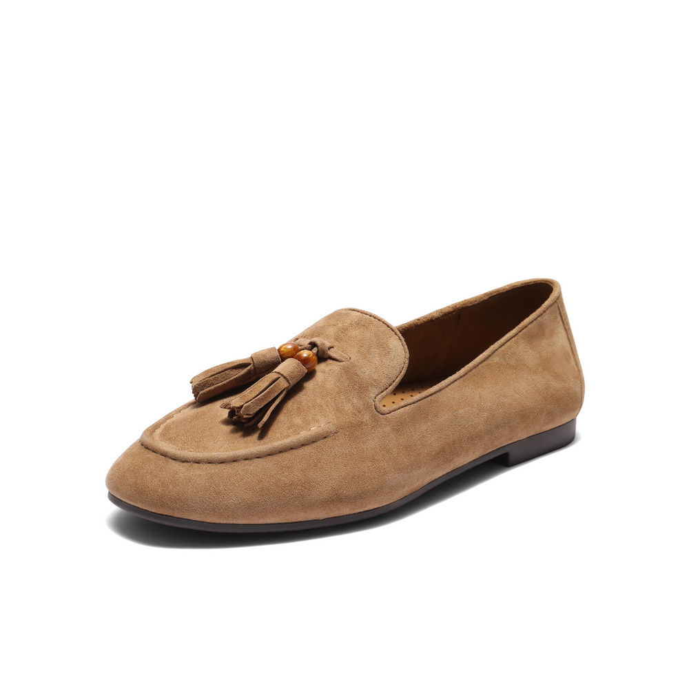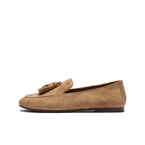 百丽复古绒面乐福鞋女2025秋新商场同款真皮通勤便士乐福3A9C3CA5