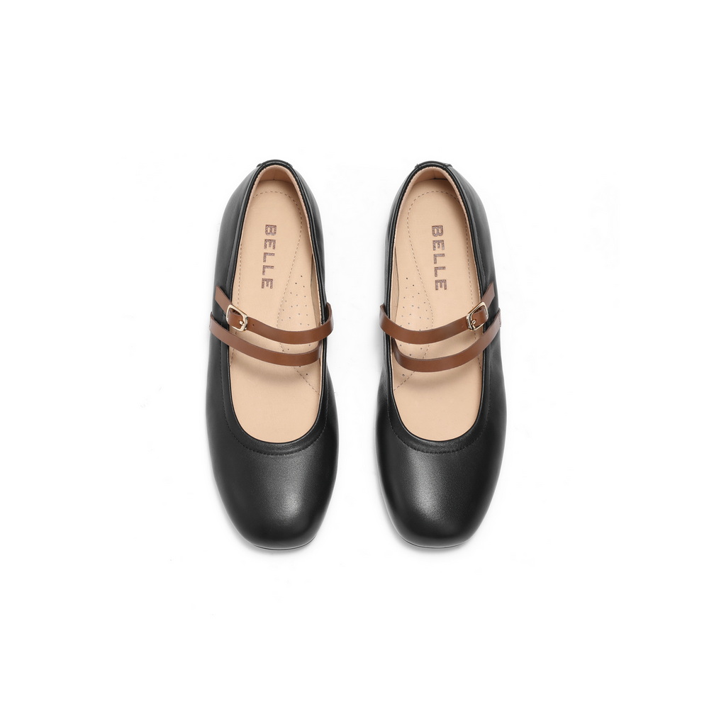 百丽舒适时装玛丽珍鞋女2025春新真皮优雅复古单鞋3H914AQ5