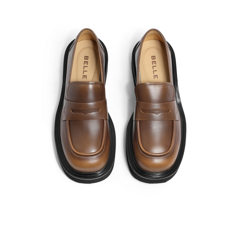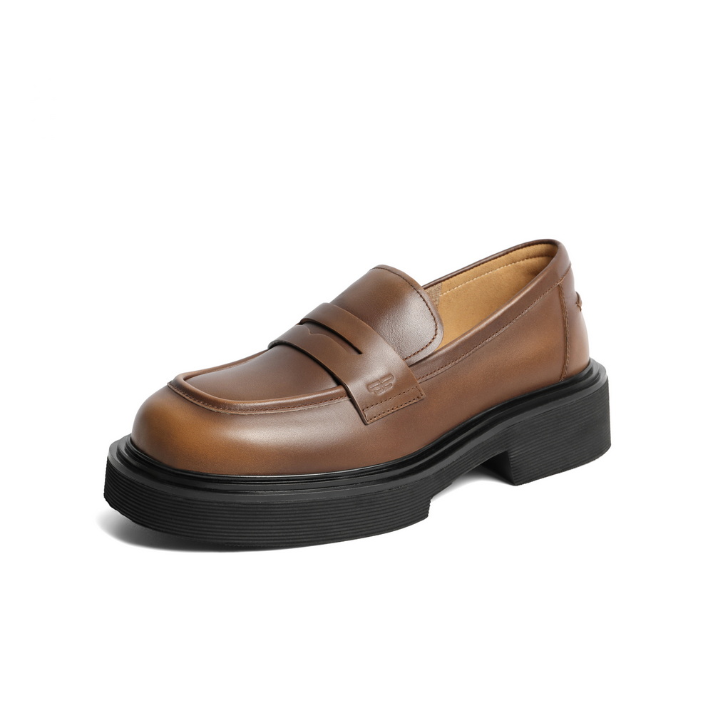 百丽学院风个性乐福鞋女24春新商场同款真皮做旧单鞋3KKB3AA4