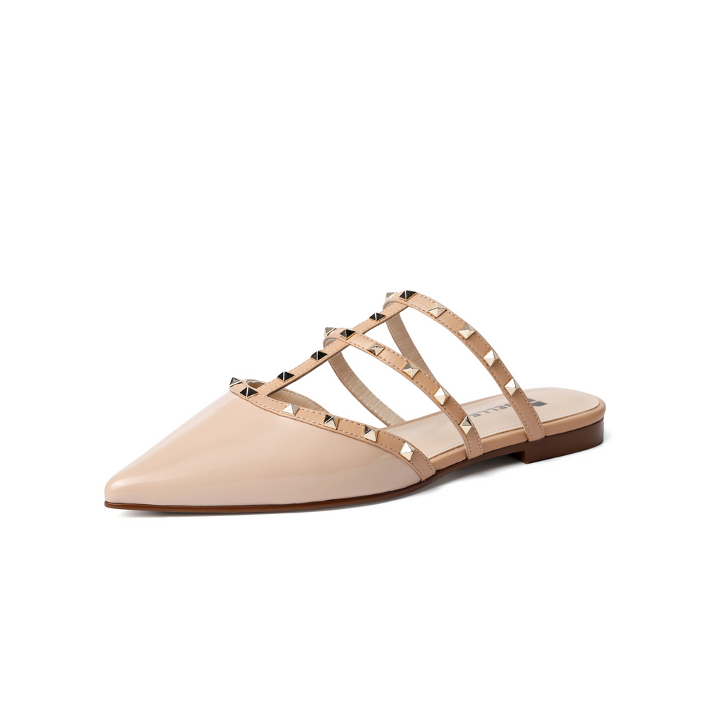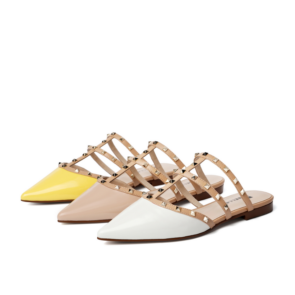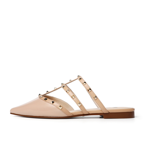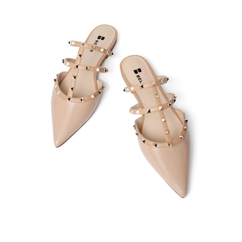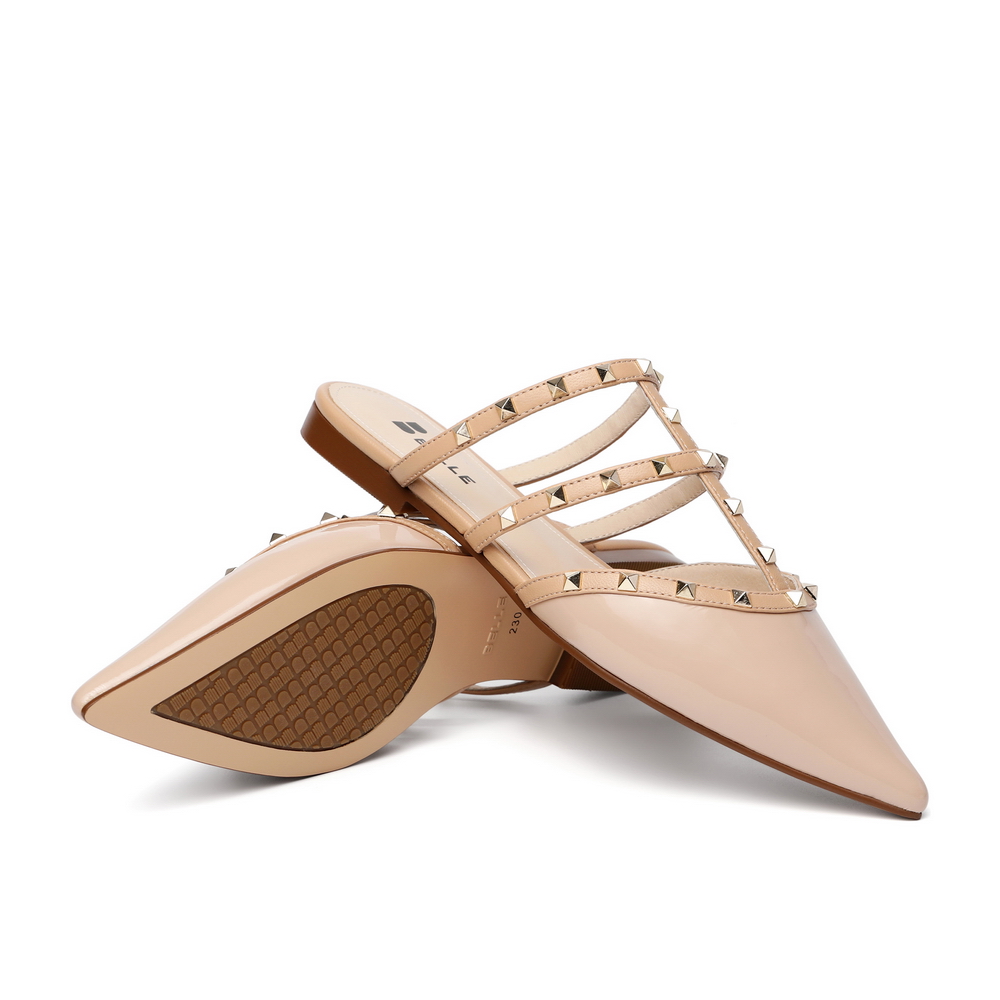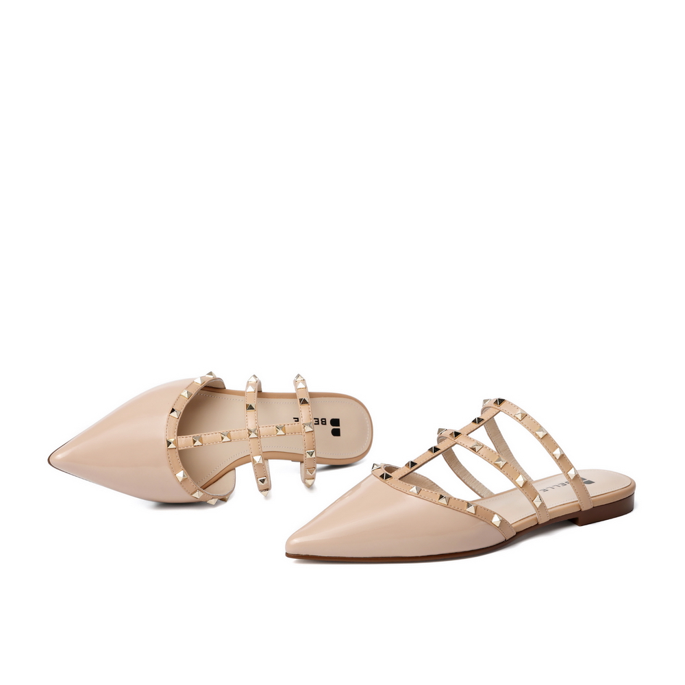 百丽平底穆勒鞋2021女漆皮牛皮革铆钉休闲半拖鞋3KZC5BH1